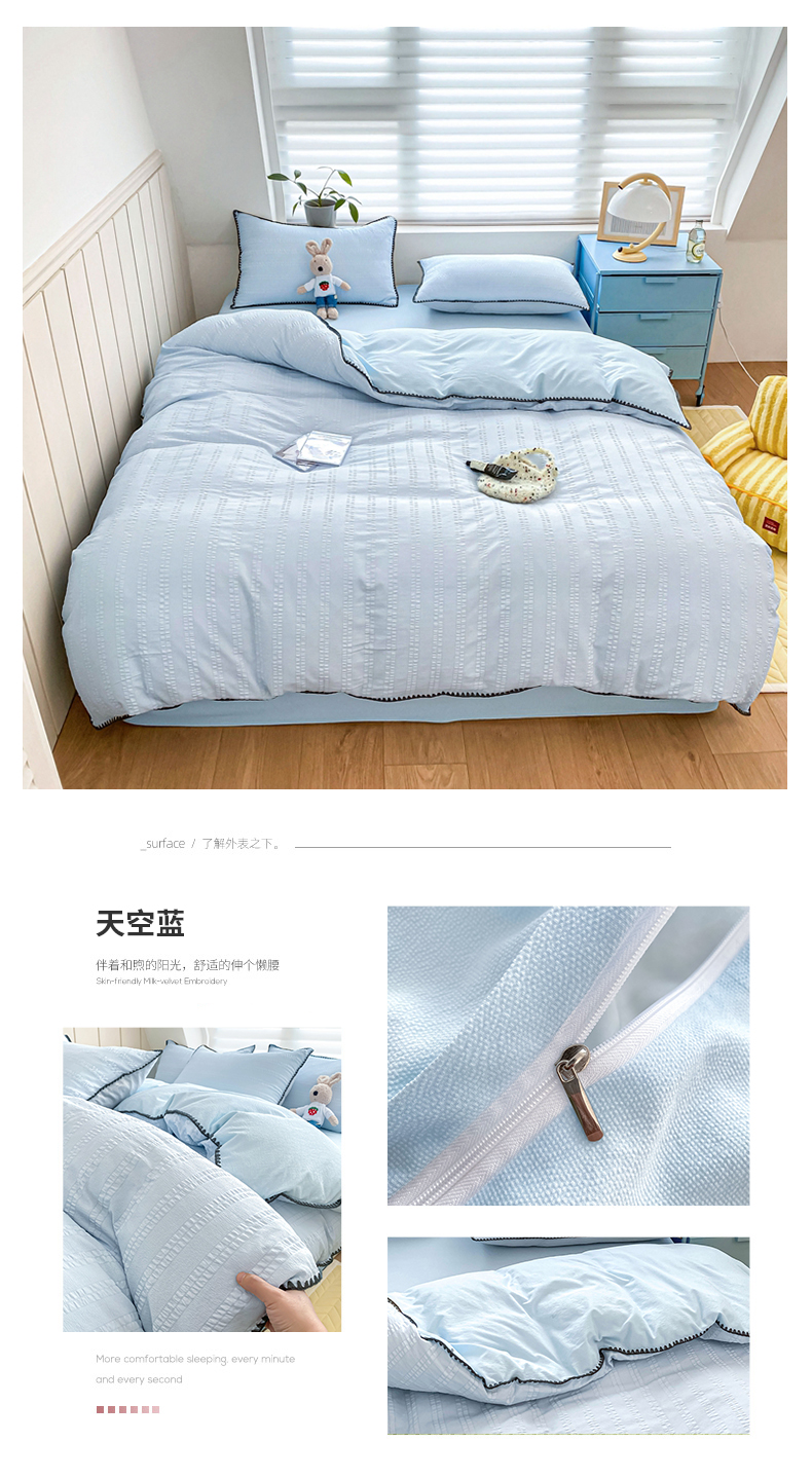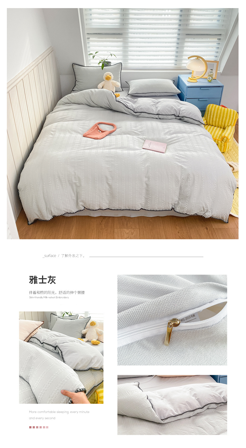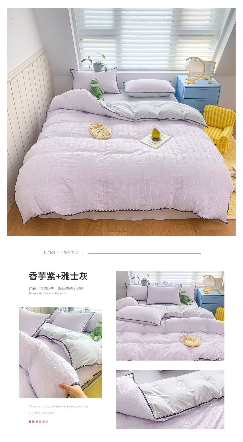 羋多 2024新款贝壳边雨泡泡棉泡泡纱双层纱四件套 香芋紫