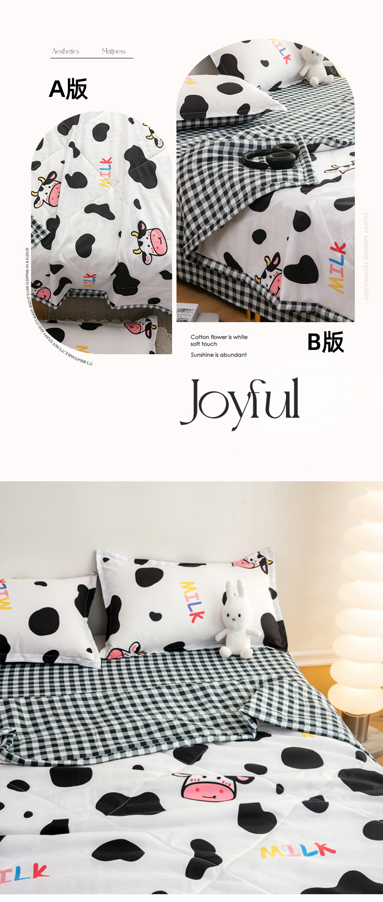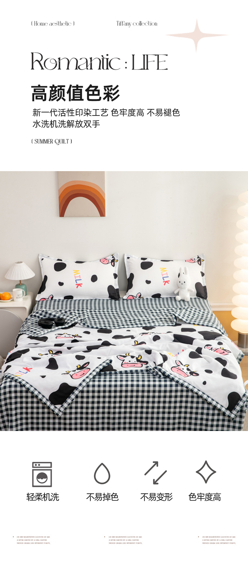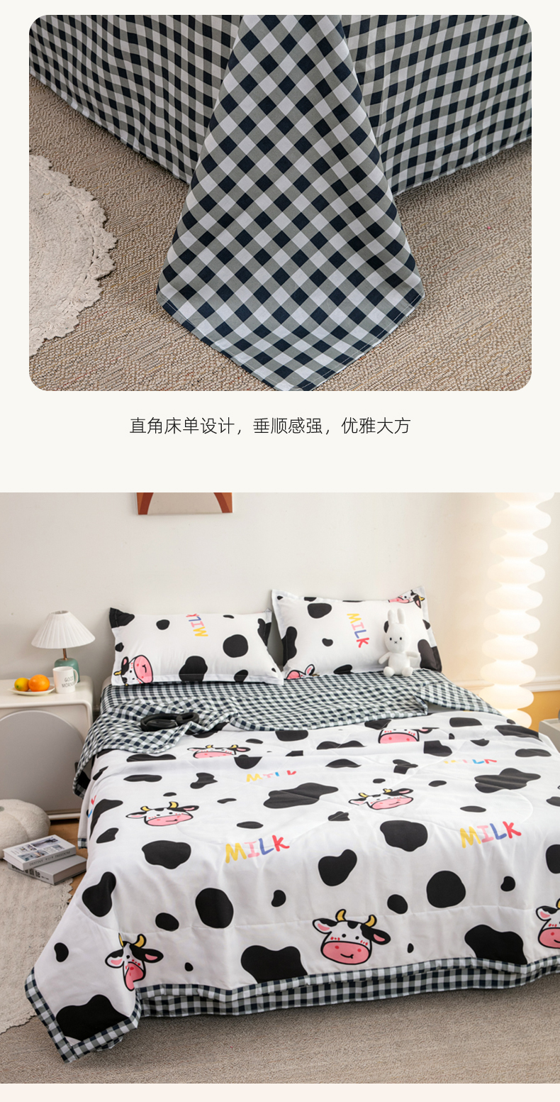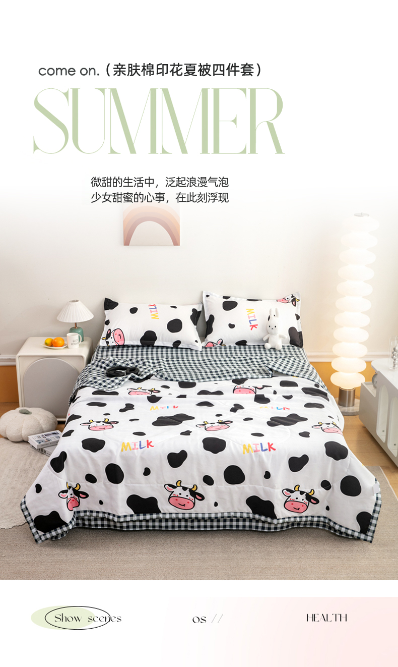 乐居坊 2024新款亲肤舒适印花芦荟棉夏凉被四件套 可爱奶牛