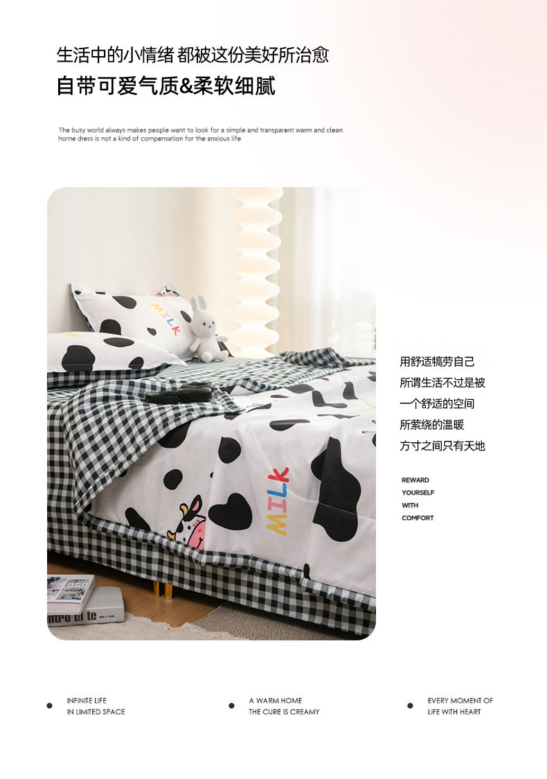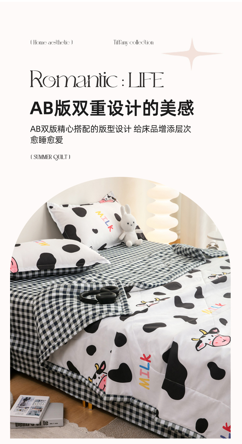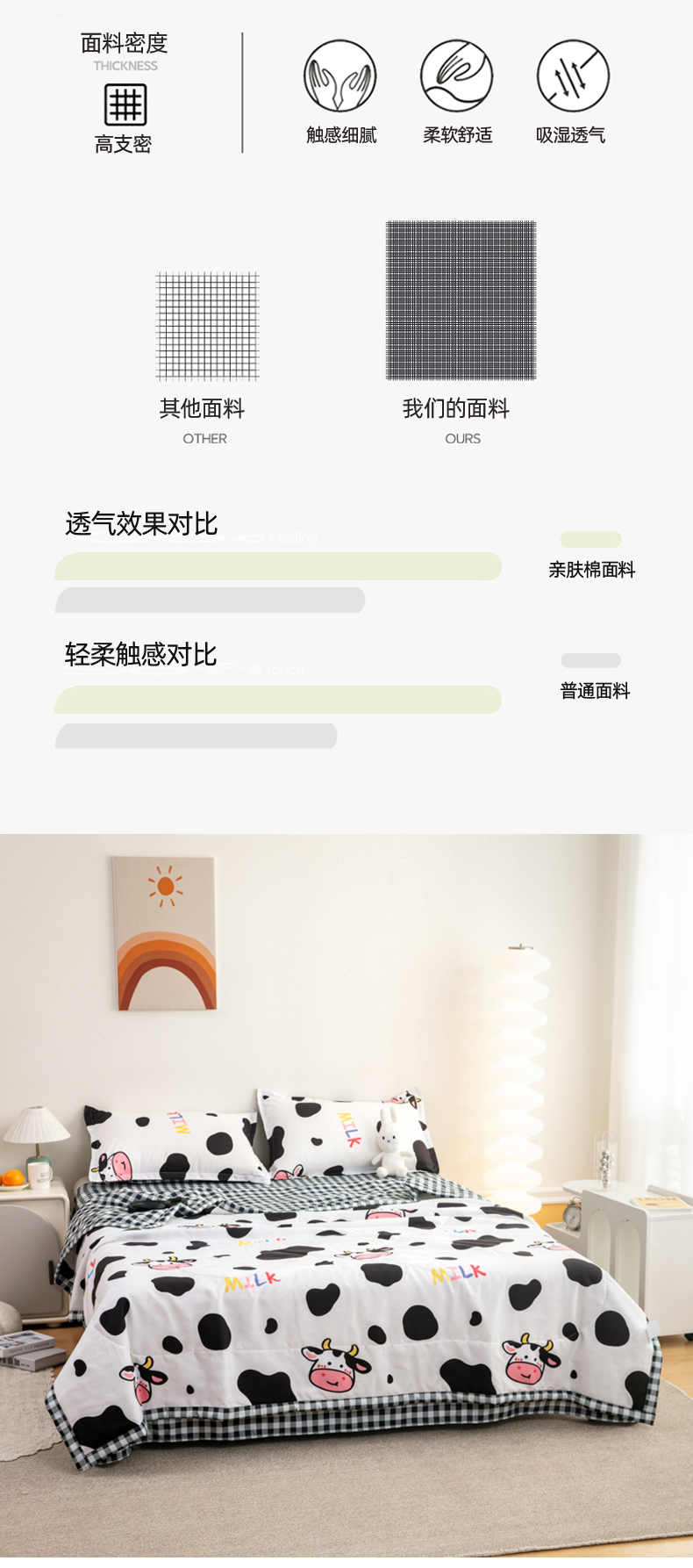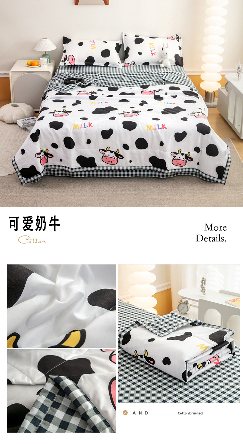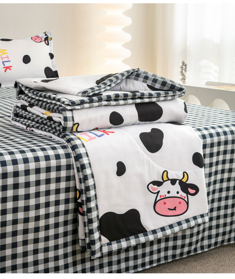 乐居坊 2024新款亲肤舒适印花芦荟棉夏凉被四件套 可爱奶牛