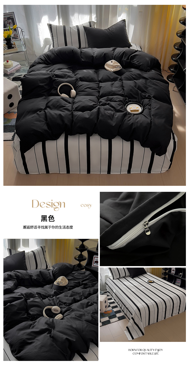 当前位置: 91家纺网 > 商品网购 > 床品套件 > 四件套 > 水洗棉四件套 > 易辰美 2024新款水洗棉混搭条纹四件套 黑色+黑条纹