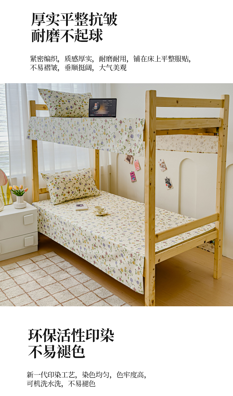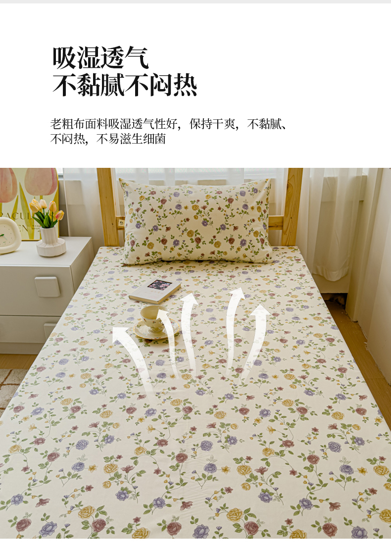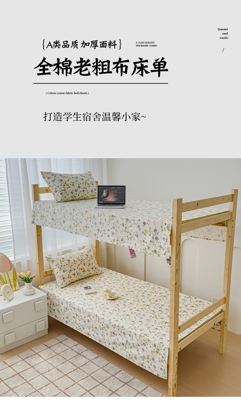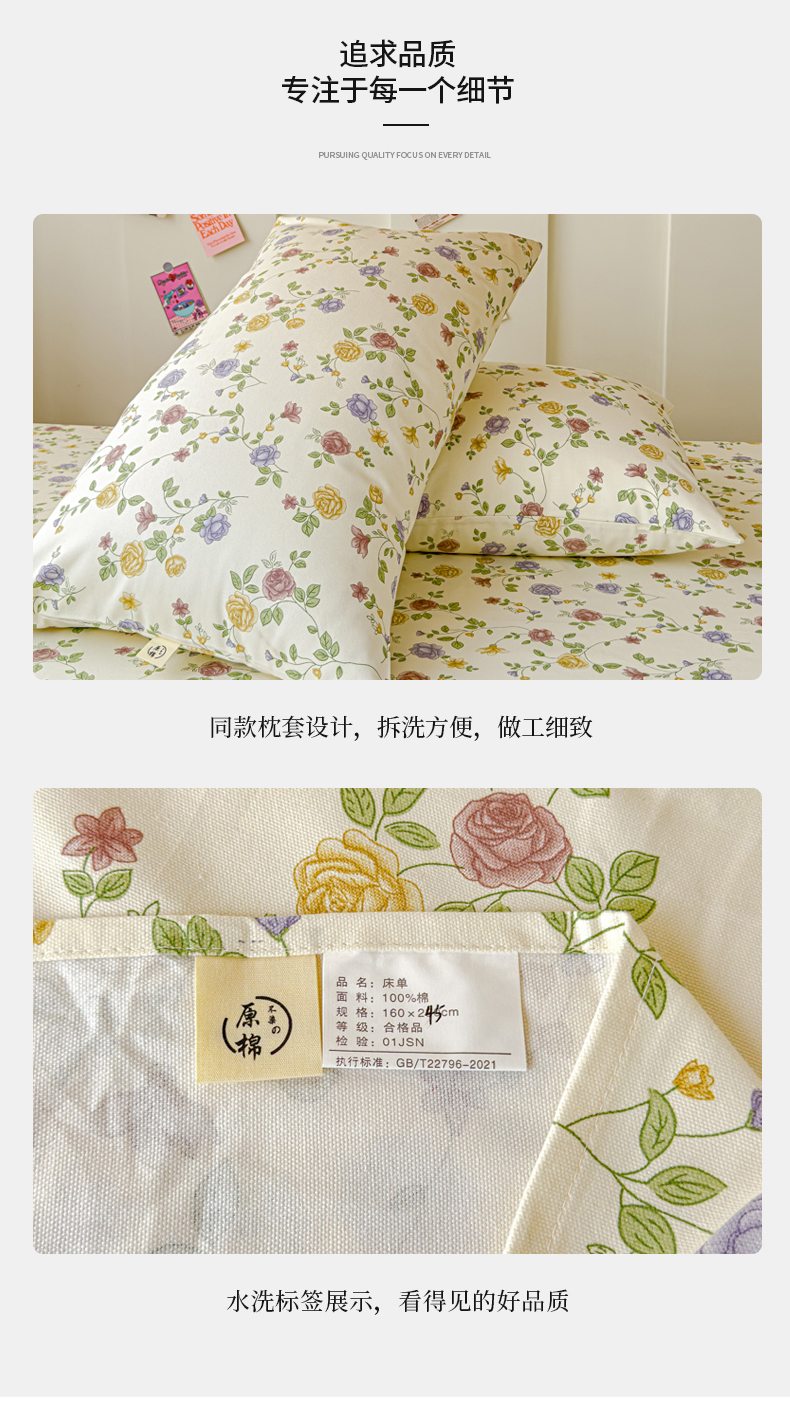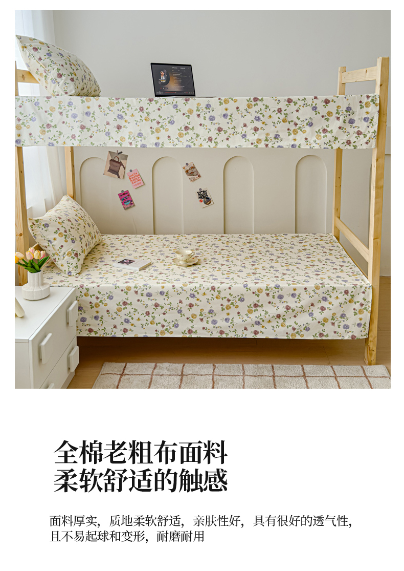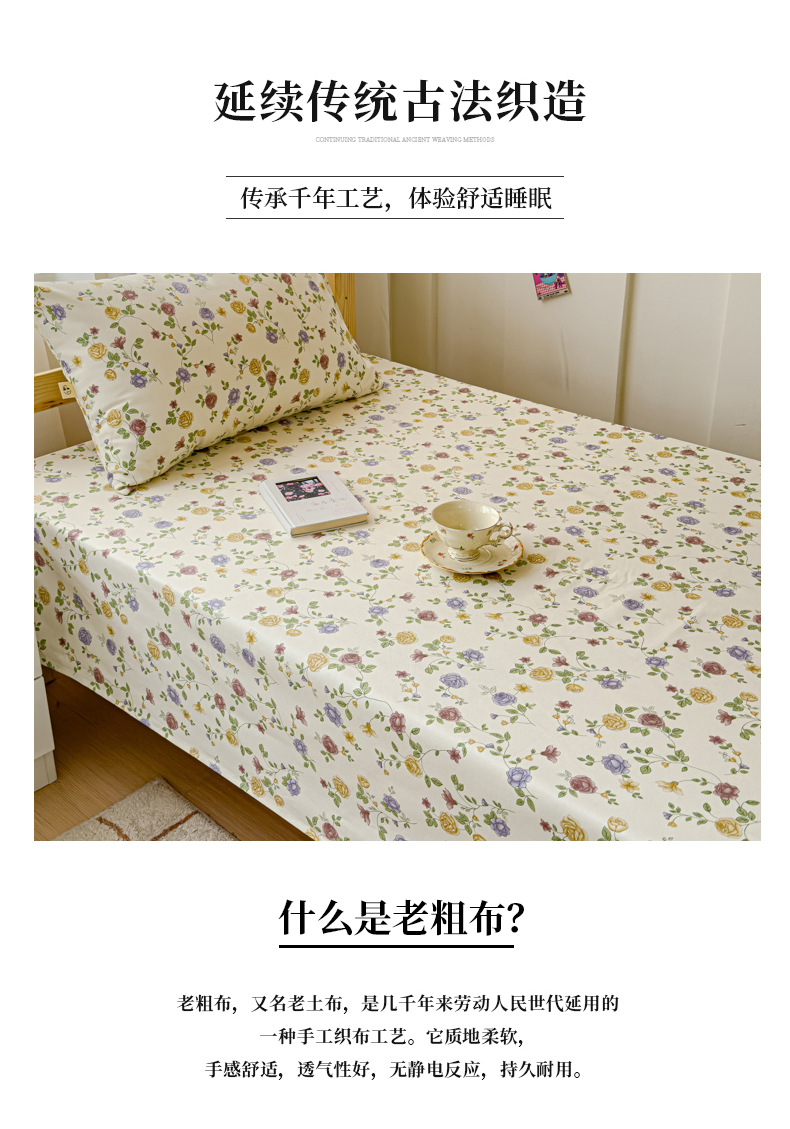 • 91家纺网 家纺一手货源 找家纺 金丝鸟 2024新款学生款A类全棉老粗布床单 花蔓