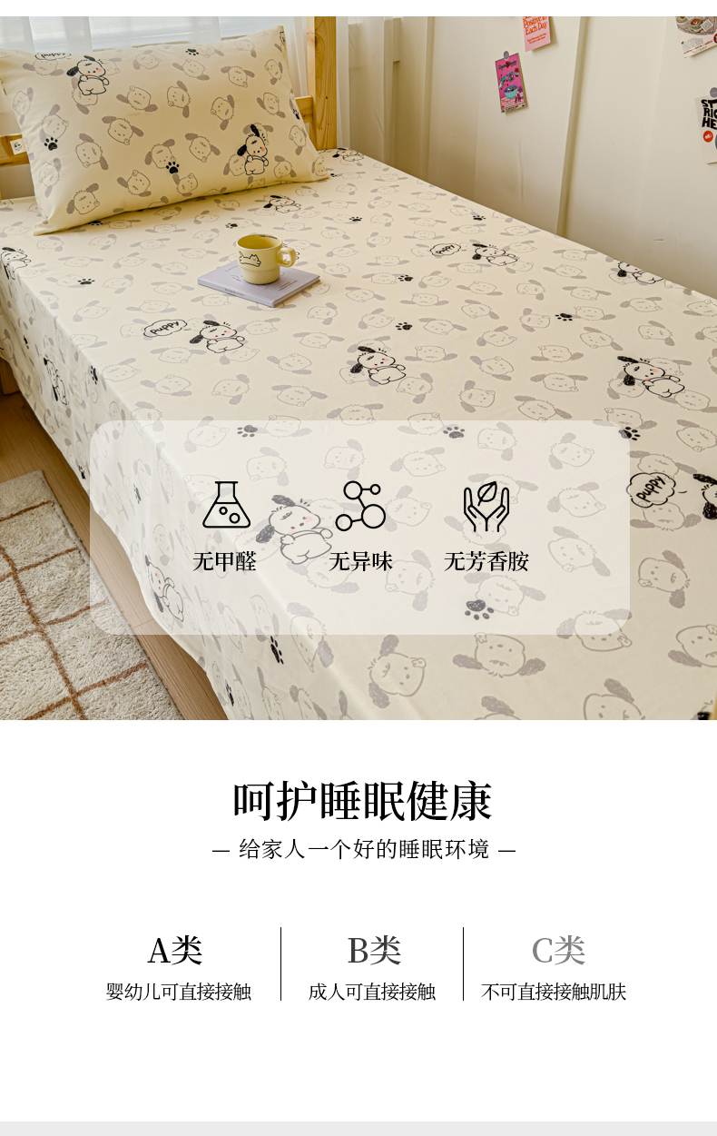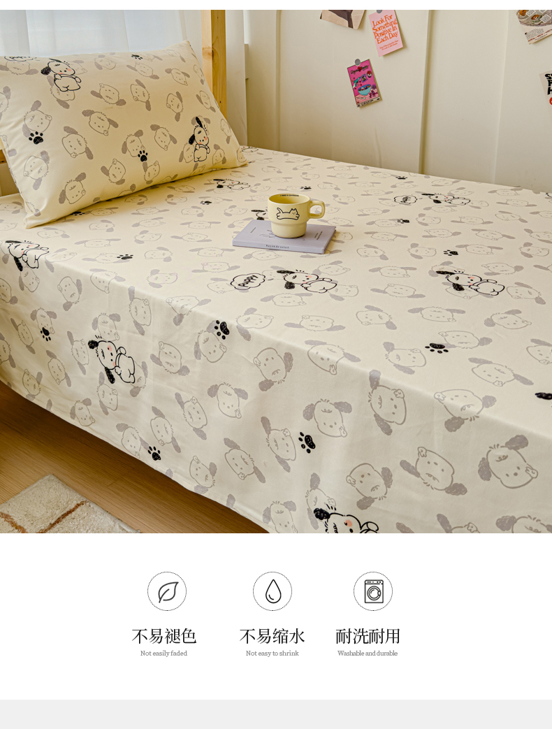 (总)金丝鸟家纺 2025新款三丽鸥系列全棉斜纹13370单品床单,波点美乐蒂,彩虹大耳朵狗,条纹库洛米,晚安kt