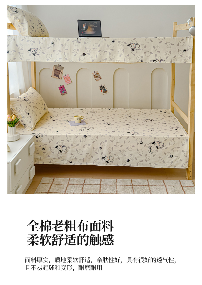 (总)金丝鸟家纺 2025新款三丽鸥系列全棉斜纹13370单品床笠-学生床,波点美乐蒂,彩虹大耳朵狗,条纹库洛米,晚安kt