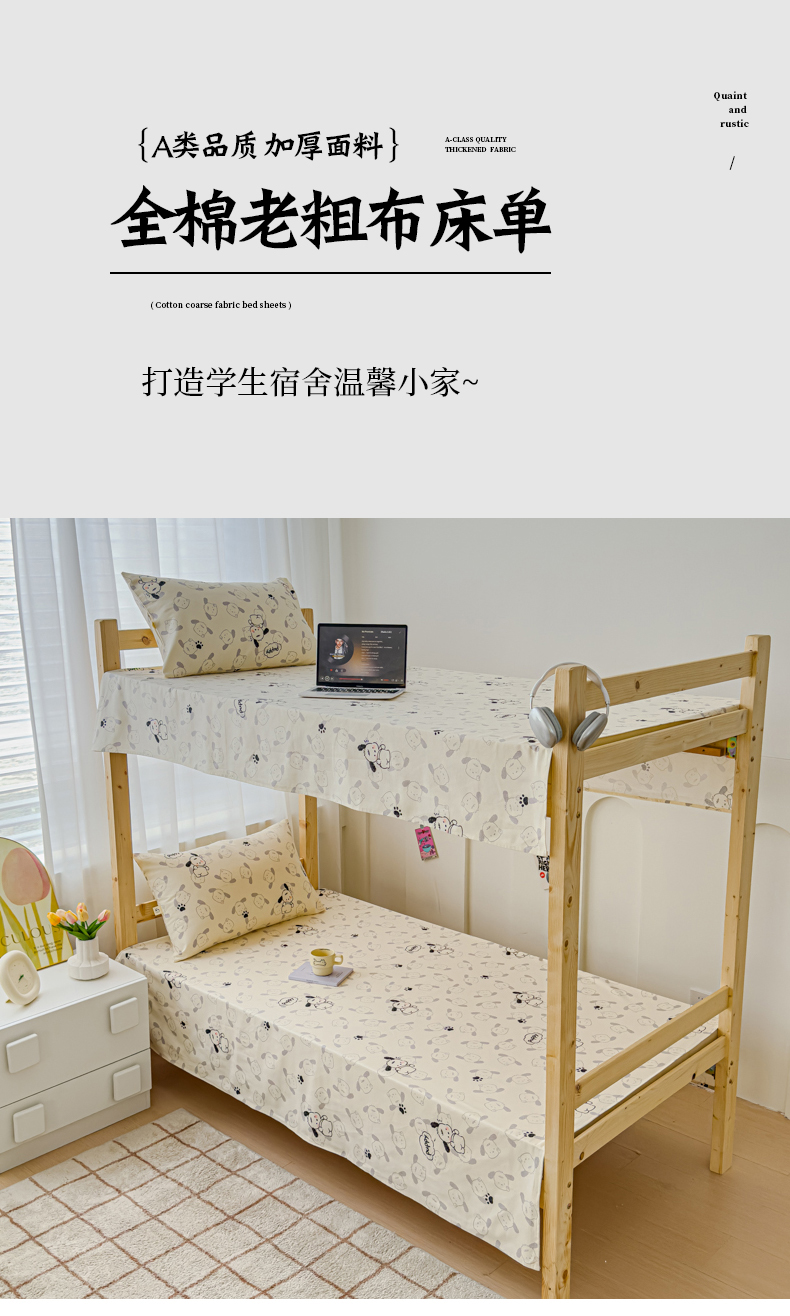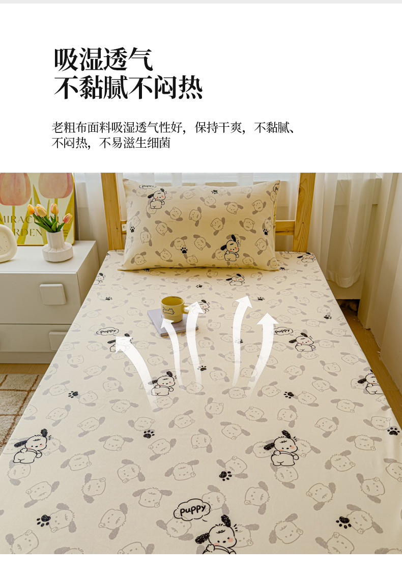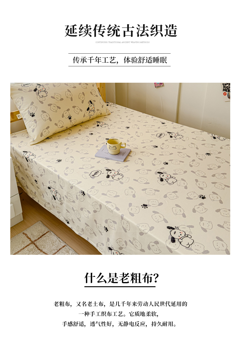 • 91家纺网 家纺一手货源 找家纺 金丝鸟 2024新款学生款A类全棉老粗布床单 小白狗