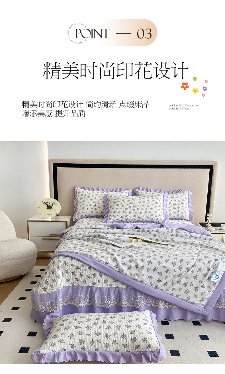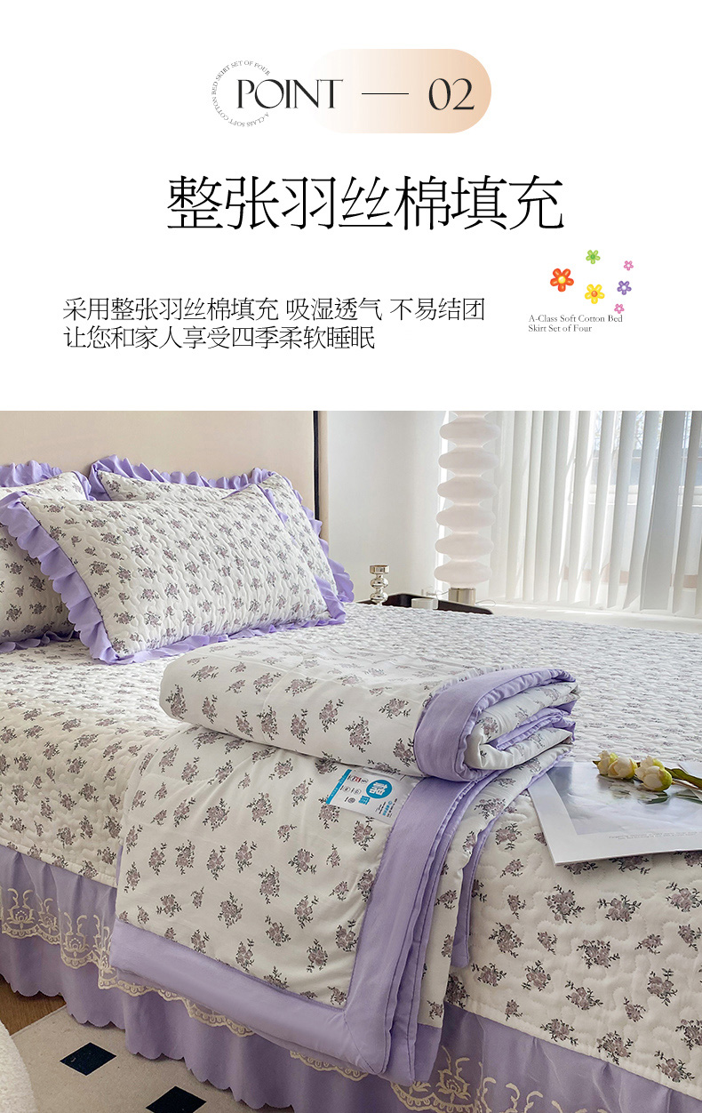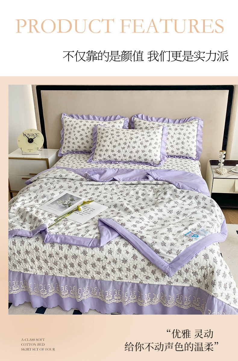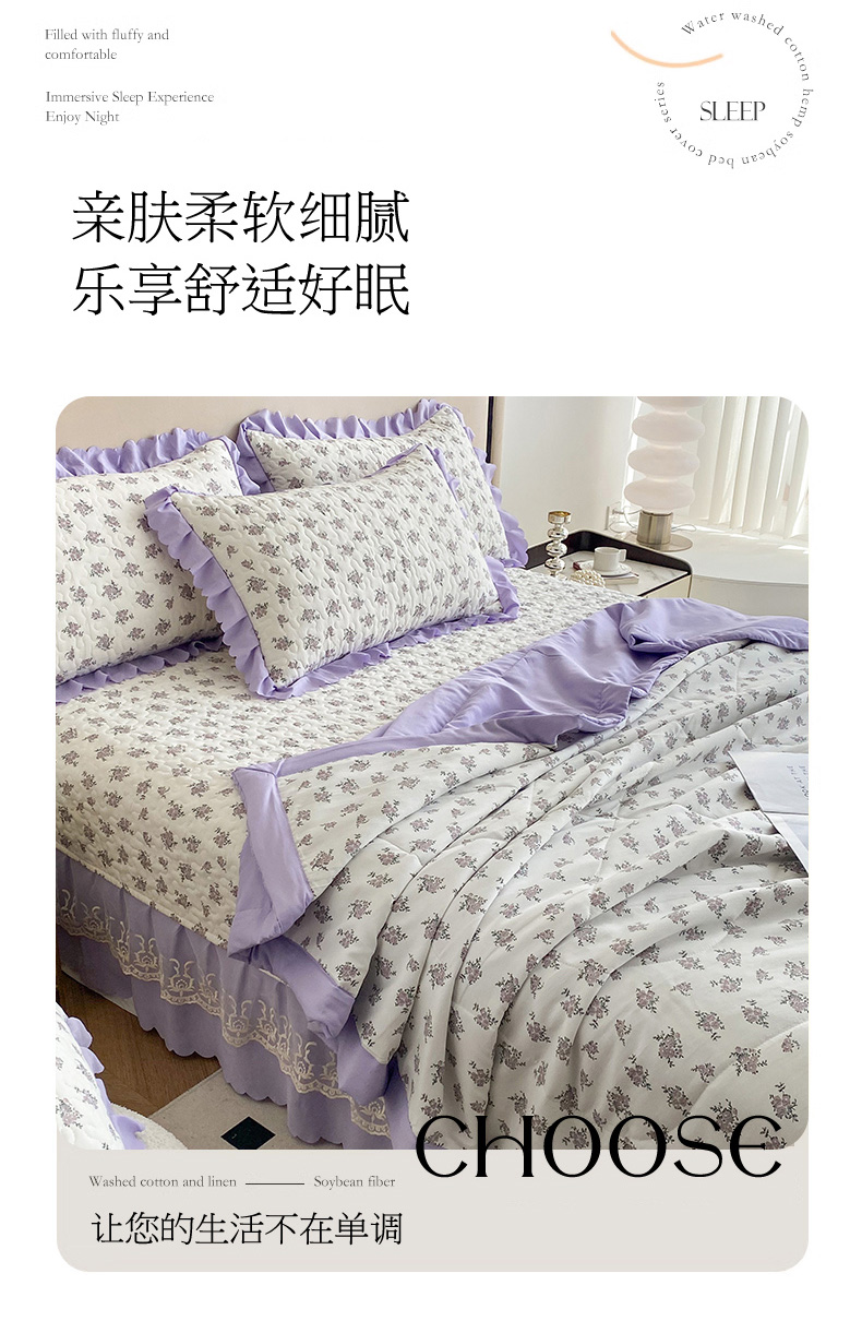 艺慕家纺 2025新款水洗棉麻双层纱夏被床盖四件套 紫菱花园,紫菱花园