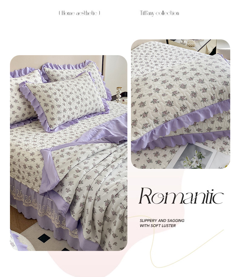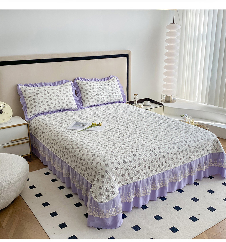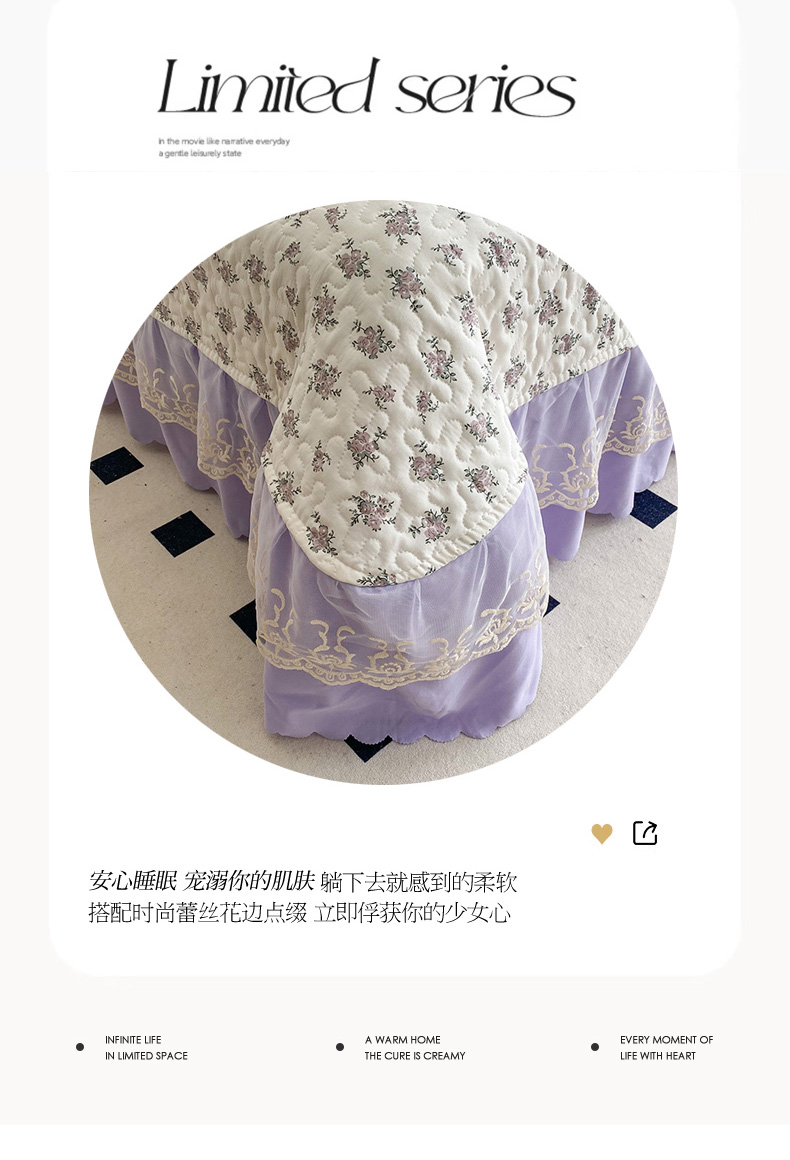 艺慕 2025款双层蕾丝大花边床盖 紫菱花园,紫菱花园