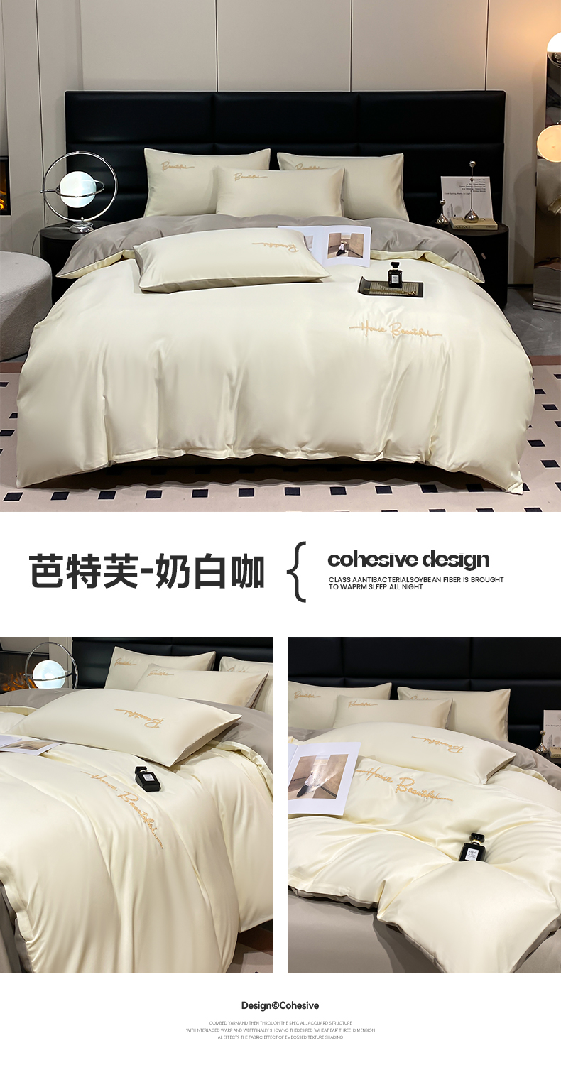 澳梵 2024新款水洗真丝刺绣四件套 芭特芙-奶白咖
