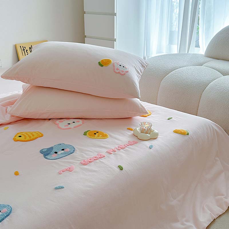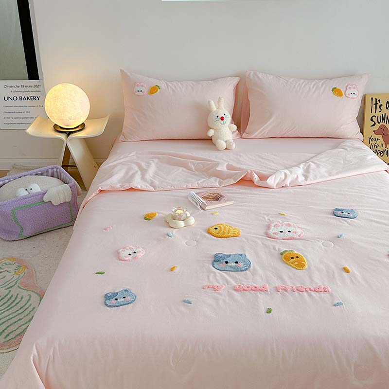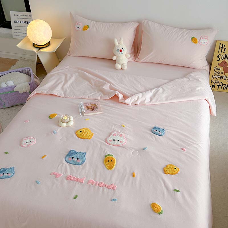 商品名称:柚子 2024新款全棉水洗新疆棉夏被四件套 萌友