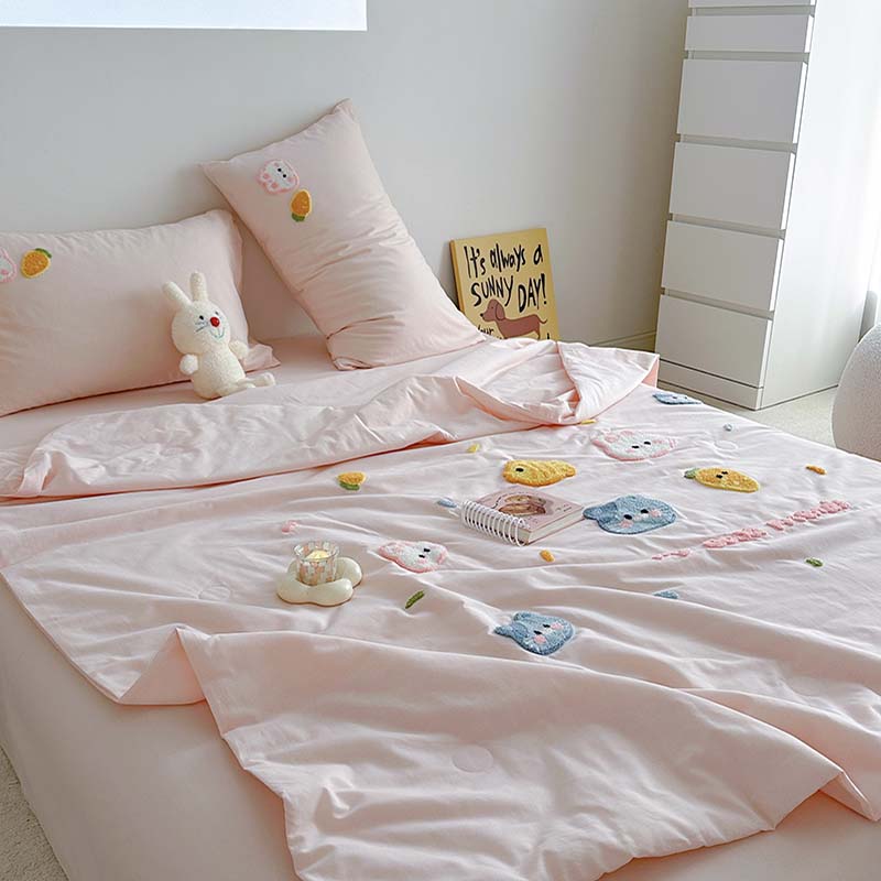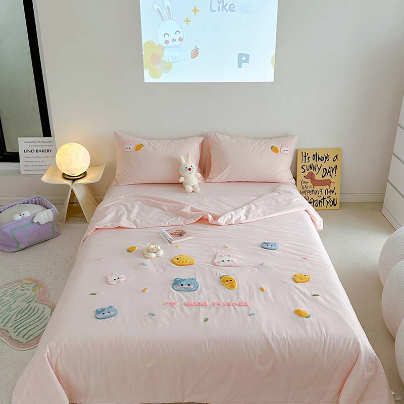 柚子 2024新款全棉水洗新疆棉夏被四件套 萌友