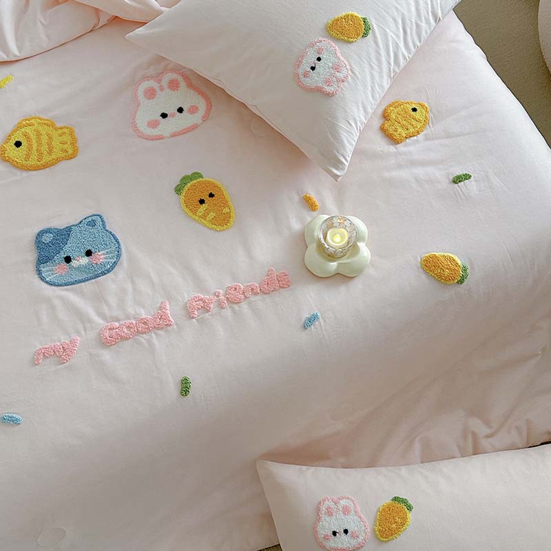 (总)柚子YOUTH 2025新款全棉纯棉工艺款13070贴布绣四件套,爱心小象,毛绒小狗,蘑菇女孩,星星法师