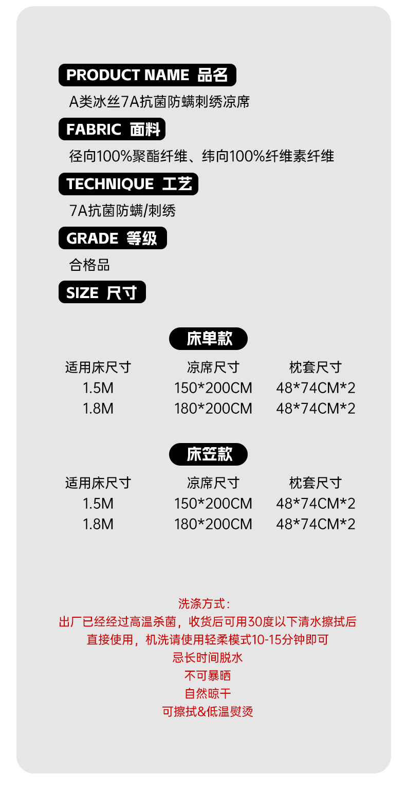 商品名称:(总)三味舒屋 2025新款凉感抗菌防螨刺绣冰丝席(新升级7A抗菌)--库里