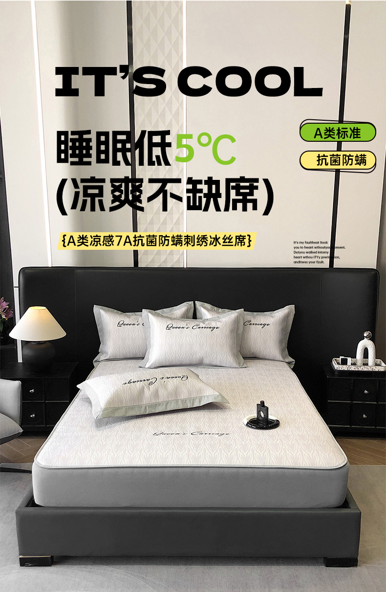 (总)三味舒屋 2025新款凉感抗菌防螨刺绣冰丝席(新升级7A抗菌)--库里