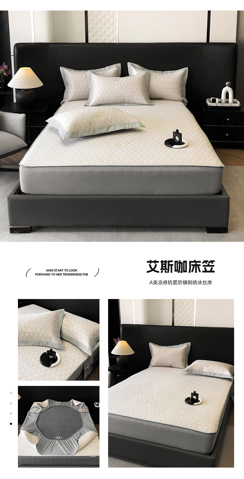 三味舒屋 2025新款凉感抗菌防螨刺绣冰丝席(新升级7A抗菌)--艾斯 艾斯咖-床笠款