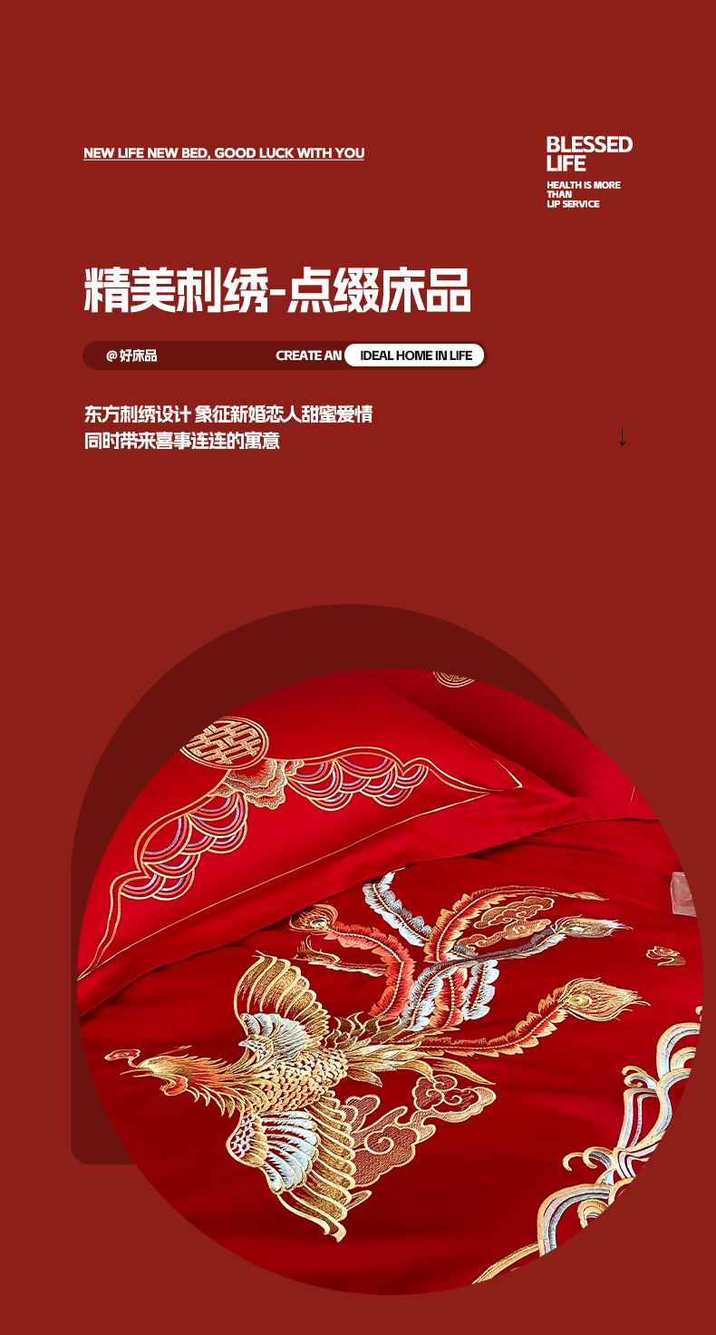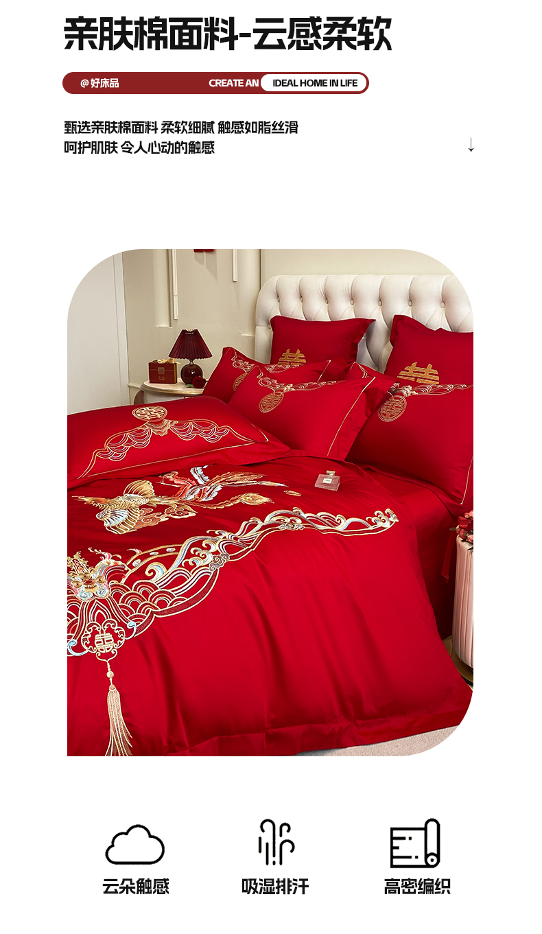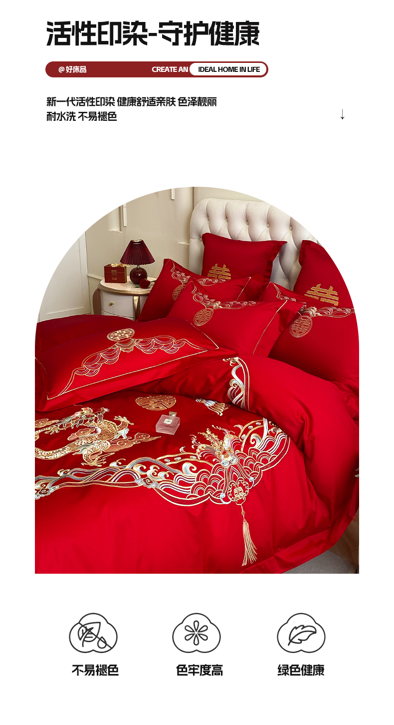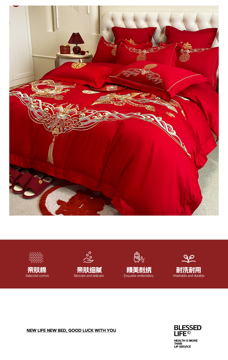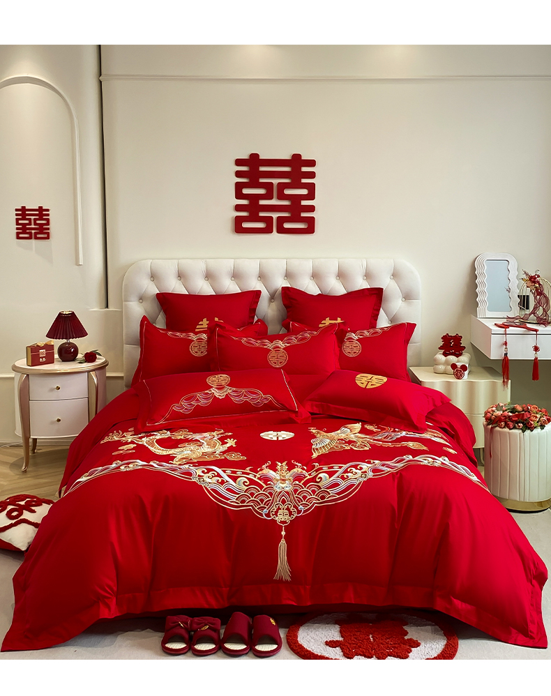 商品名称:欧乐蒂 2025新款亲肤棉婚庆刺绣四件套-终版 龙凤祥瑞