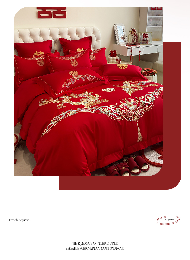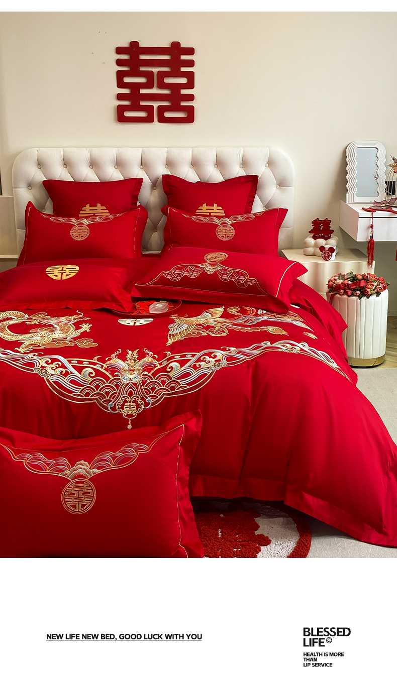 欧乐蒂 2025新款亲肤棉婚庆刺绣四件套-终版 龙凤祥瑞