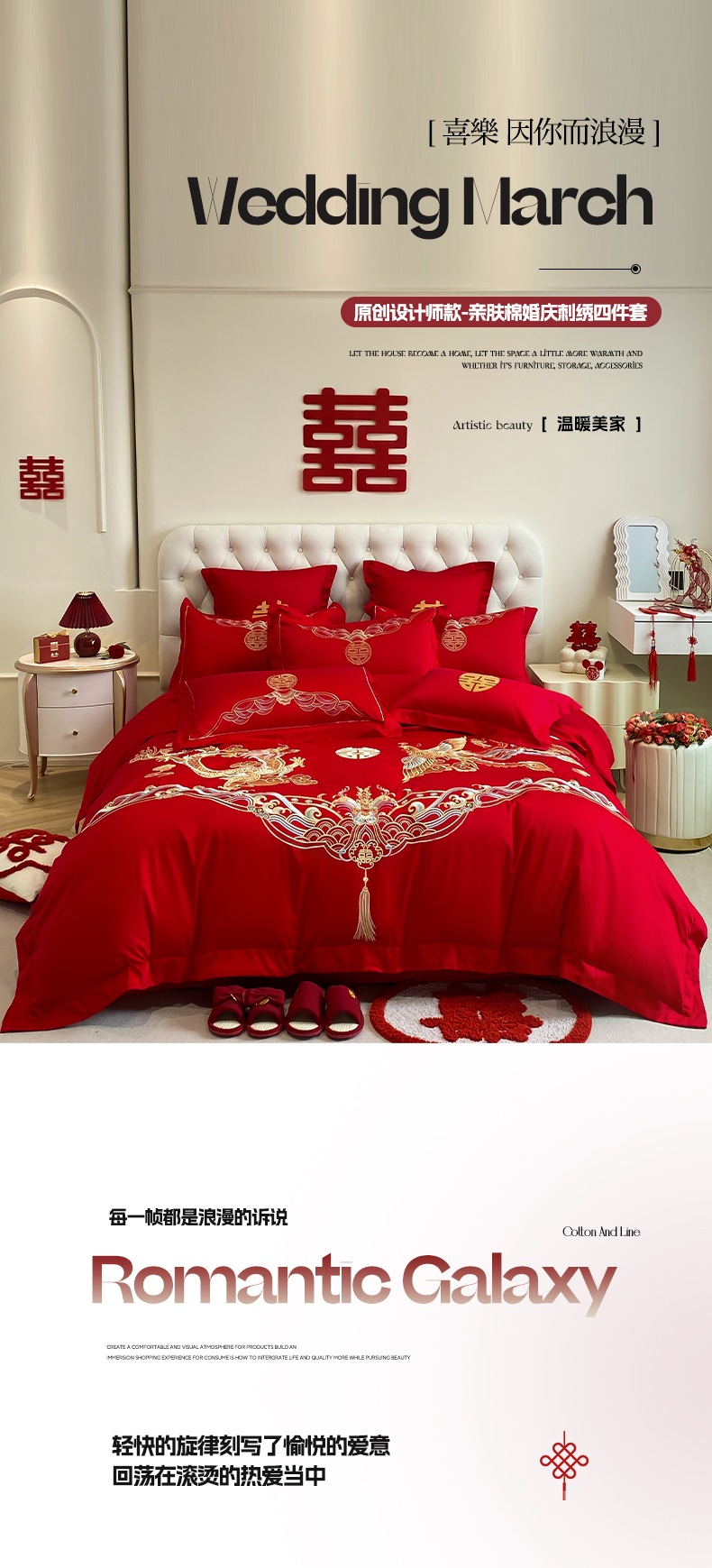 (总)欧乐蒂 2025新款设计师原创亲肤棉婚庆四件套,云喜东方,双喜临门,喜乐,喜事连连,爱恋,玫瑰爱恋,花开富贵,金枝玉叶,锦绣佳缘,龙姿风采