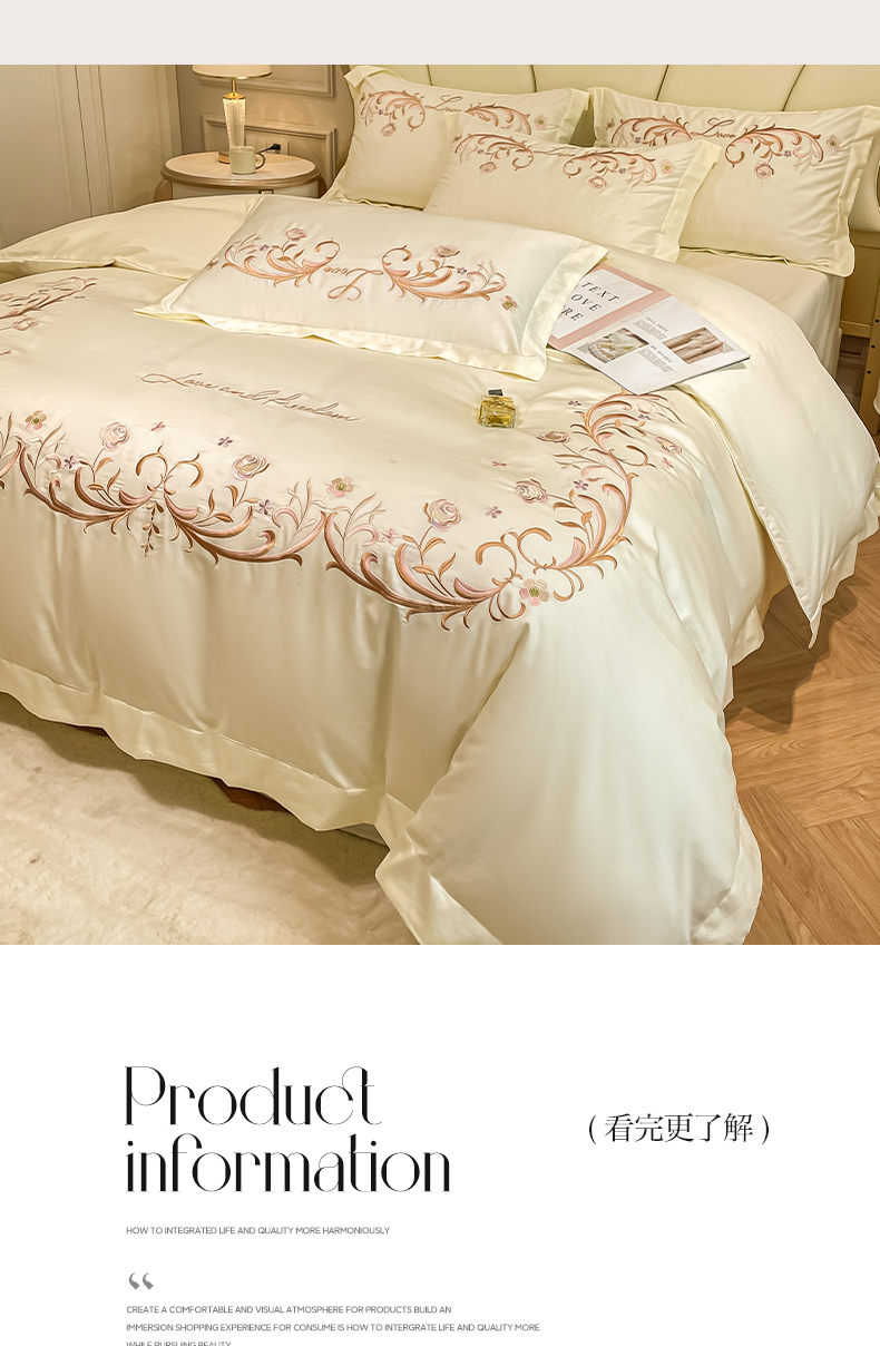 (总)欧乐蒂 2025新款欧式水洗贡缎全棉刺绣四件套-欧雅终版,宾利蓝,玉色,白色,粉色,豆沙,酒红,香槟,高级灰