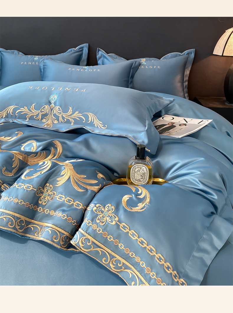 欧乐蒂 2025新款欧式水洗贡缎全棉刺绣四件套-欧雅终版 宾利蓝