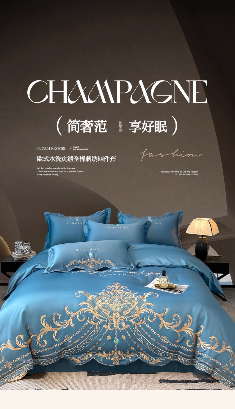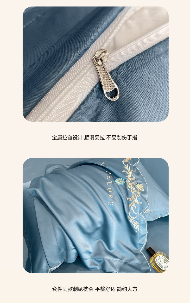商品名称:欧乐蒂 2025新款欧式水洗贡缎全棉刺绣四件套-欧雅终版 宾利蓝