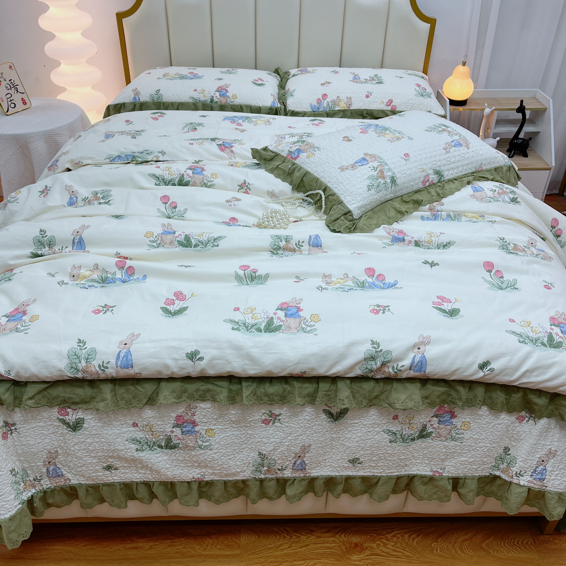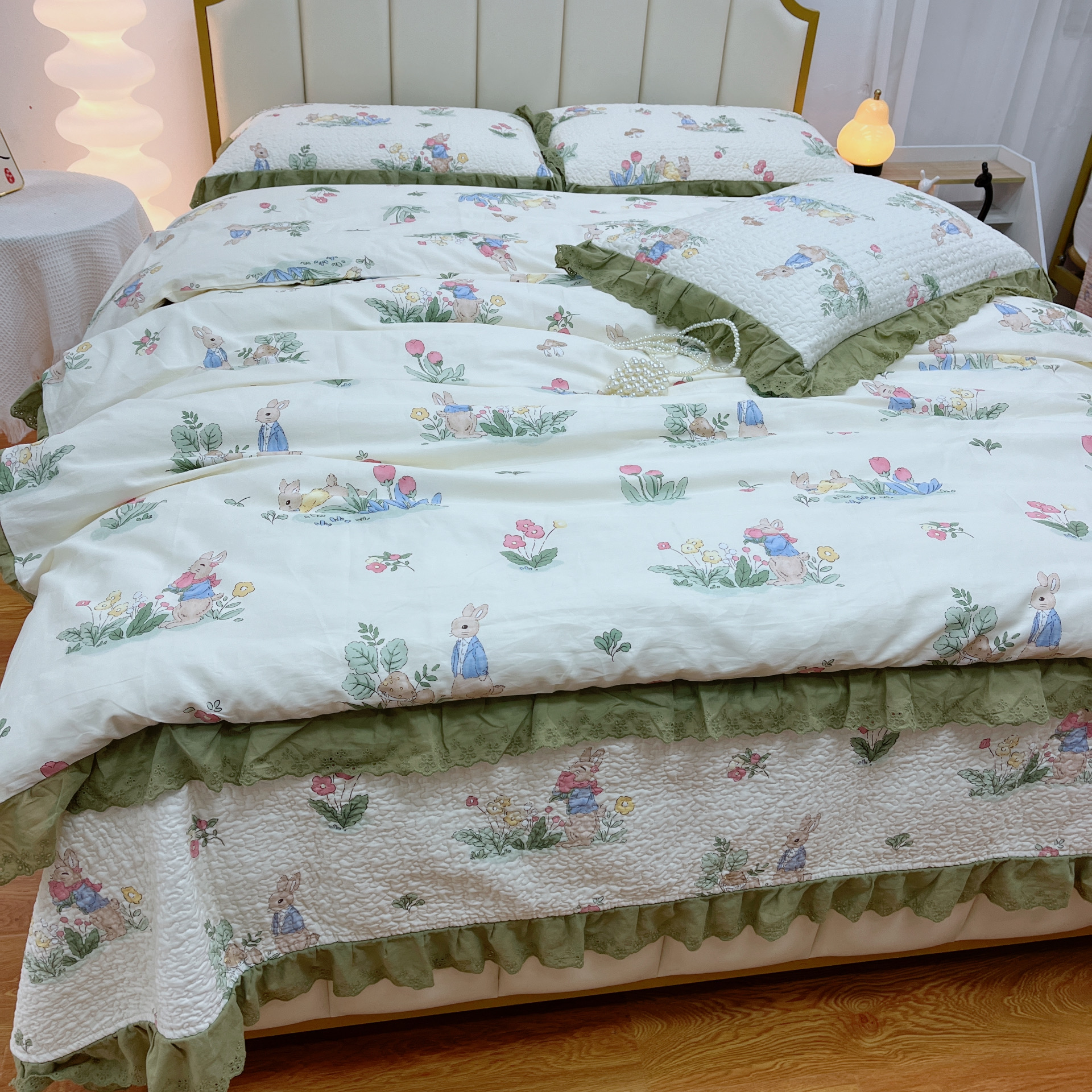 商品名称:暖居 2024新款砂洗棉花被套全棉床盖四件套绗缝夹棉纯棉床盖三件套 幸运兔