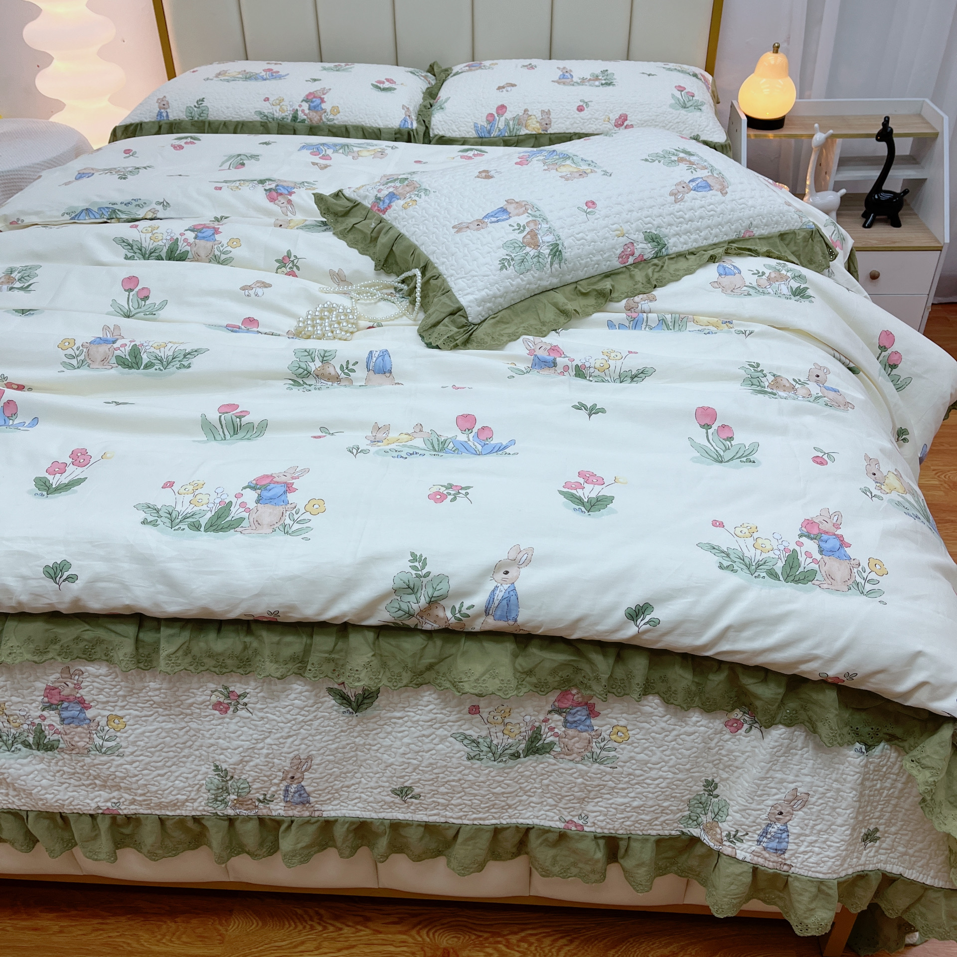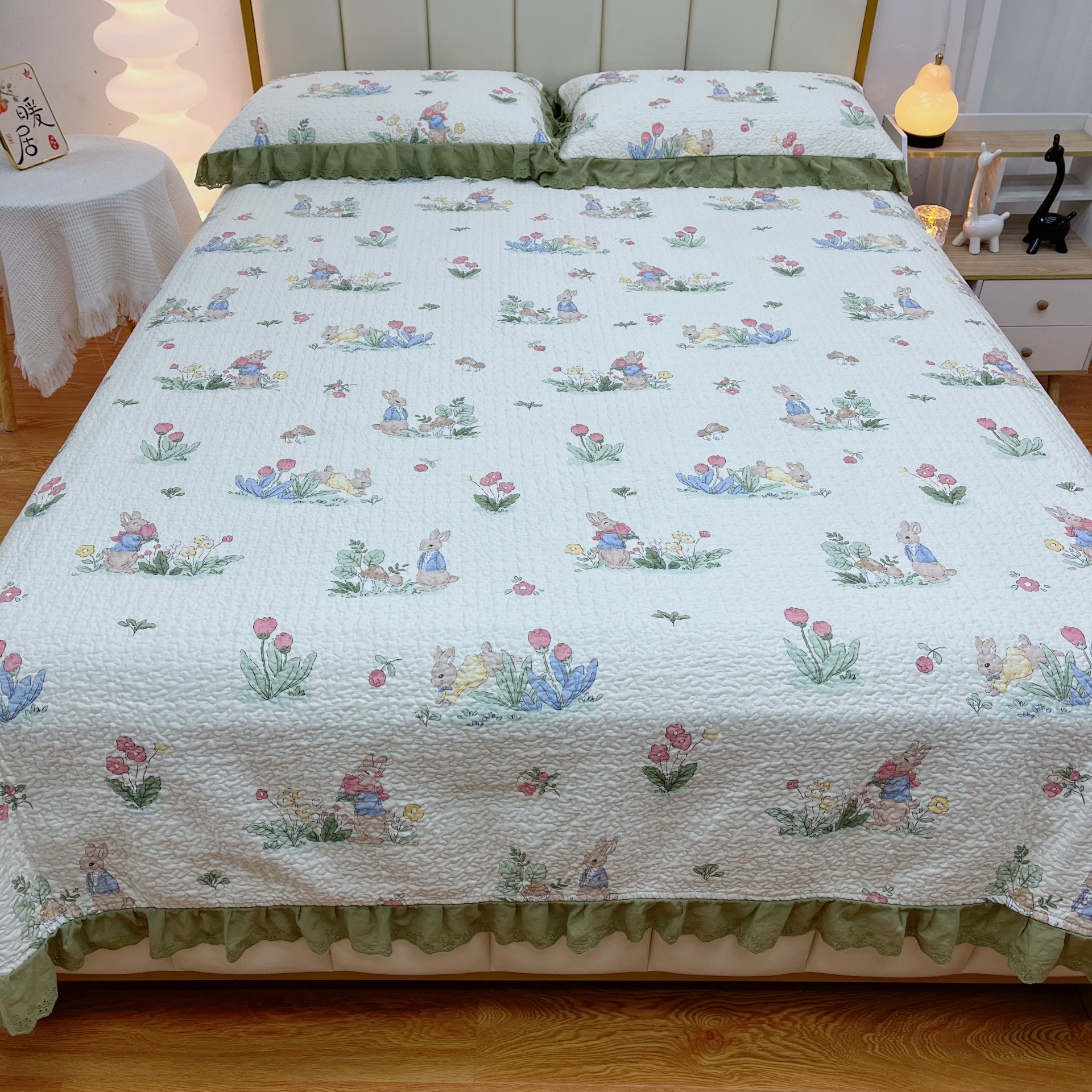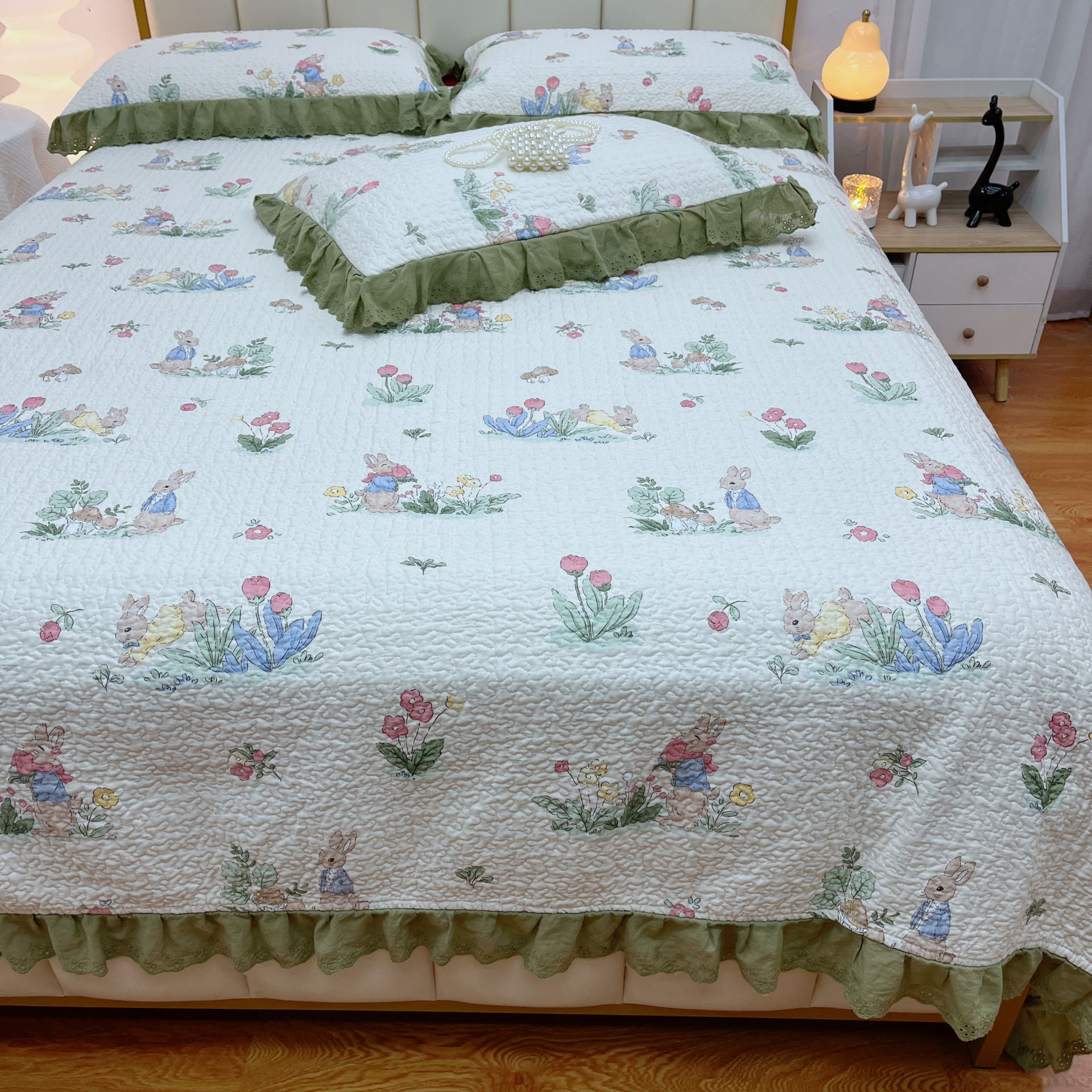 暖居 2024新款砂洗棉花被套全棉床盖四件套绗缝夹棉纯棉床盖三件套 幸运兔