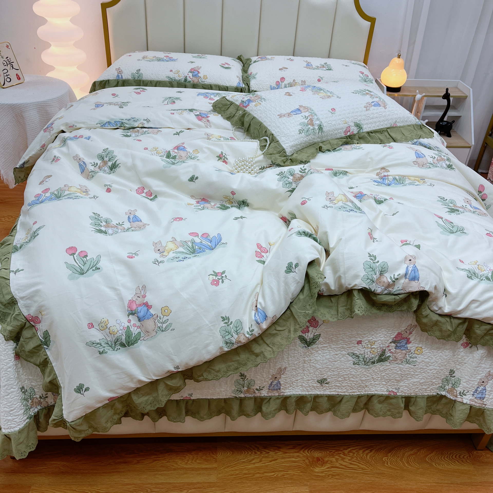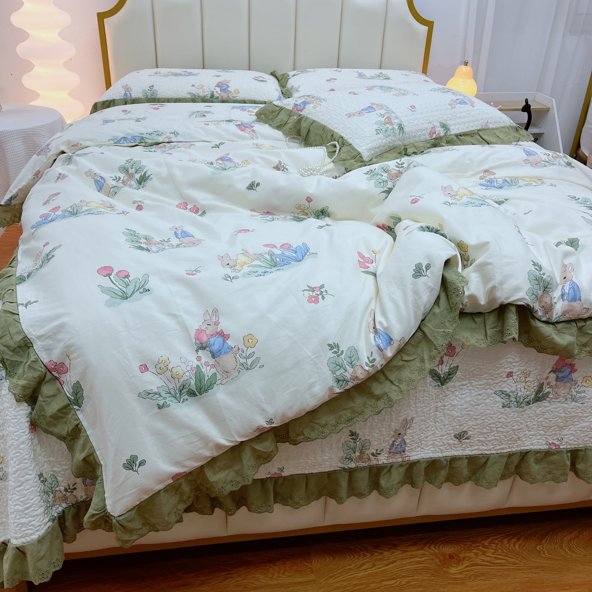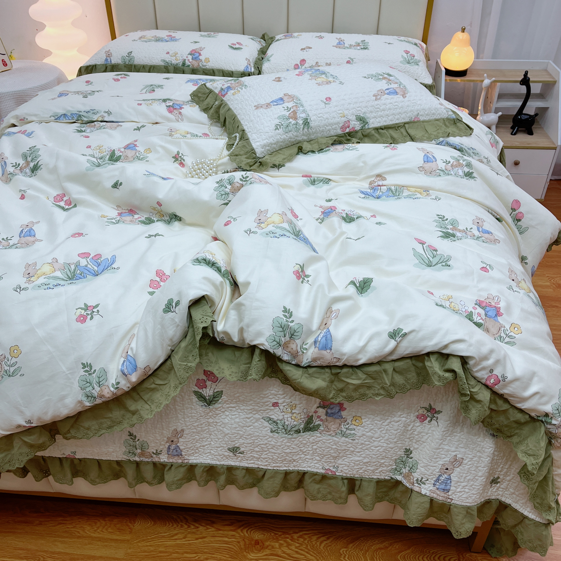 暖居 2024新款砂洗棉花被套全棉床盖四件套绗缝夹棉纯棉床盖三件套 幸运兔
