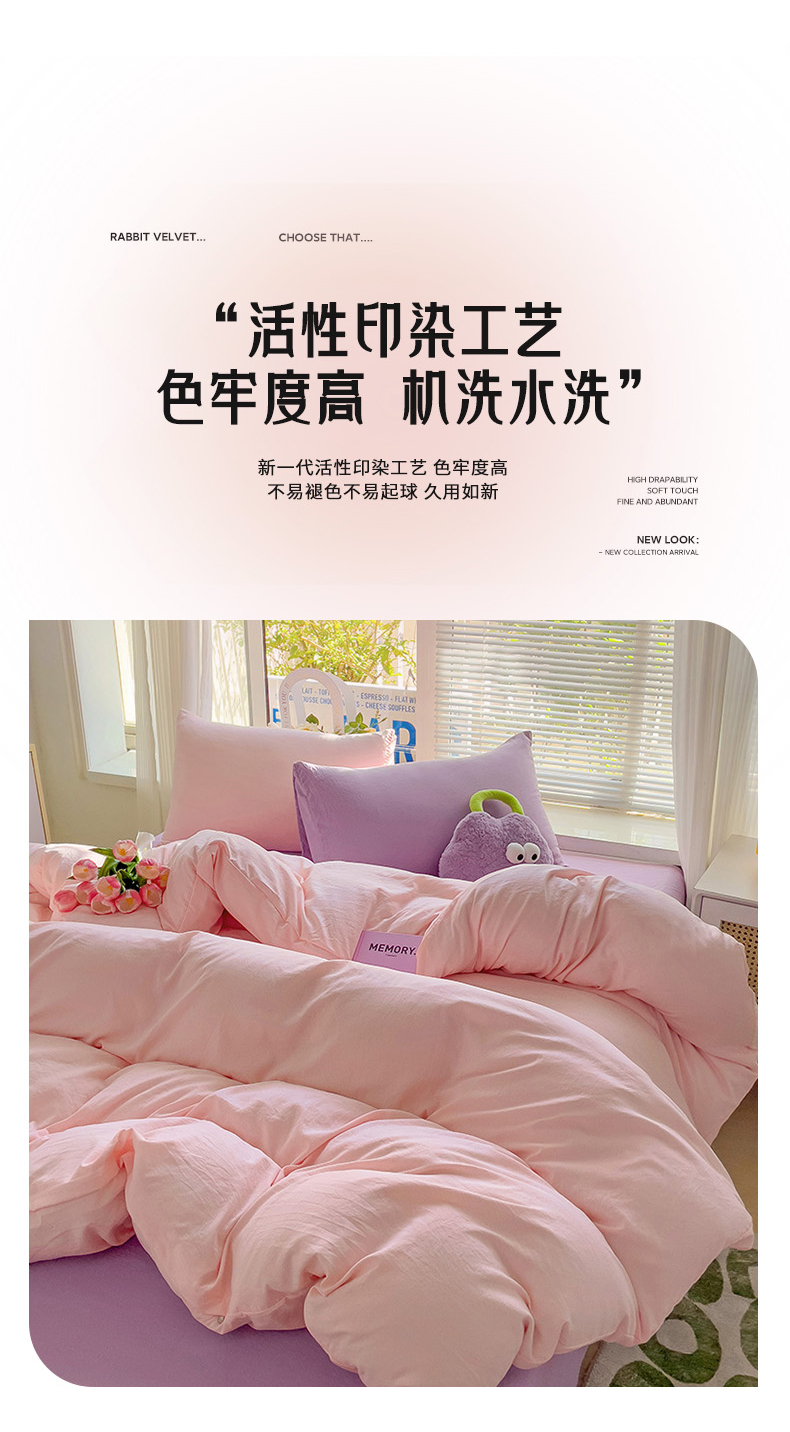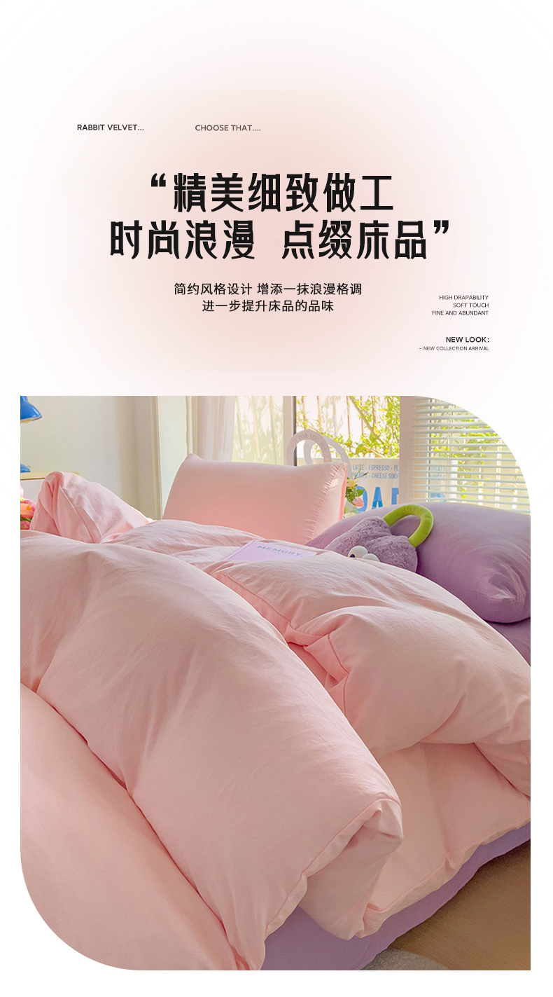 当前位置: 91家纺网 > 商品网购 > 床品套件 > 四件套 > 水洗棉四件套 > 森璐家纺 2024新款1ins风水洗棉四件套纯色四件套混搭素色四件套(二) 混搭-粉紫
