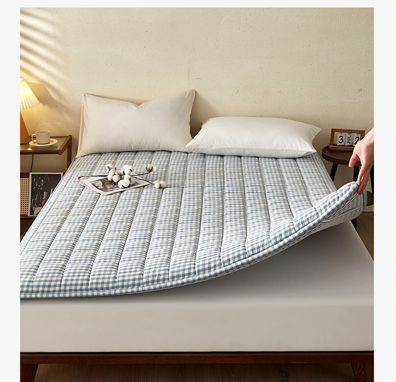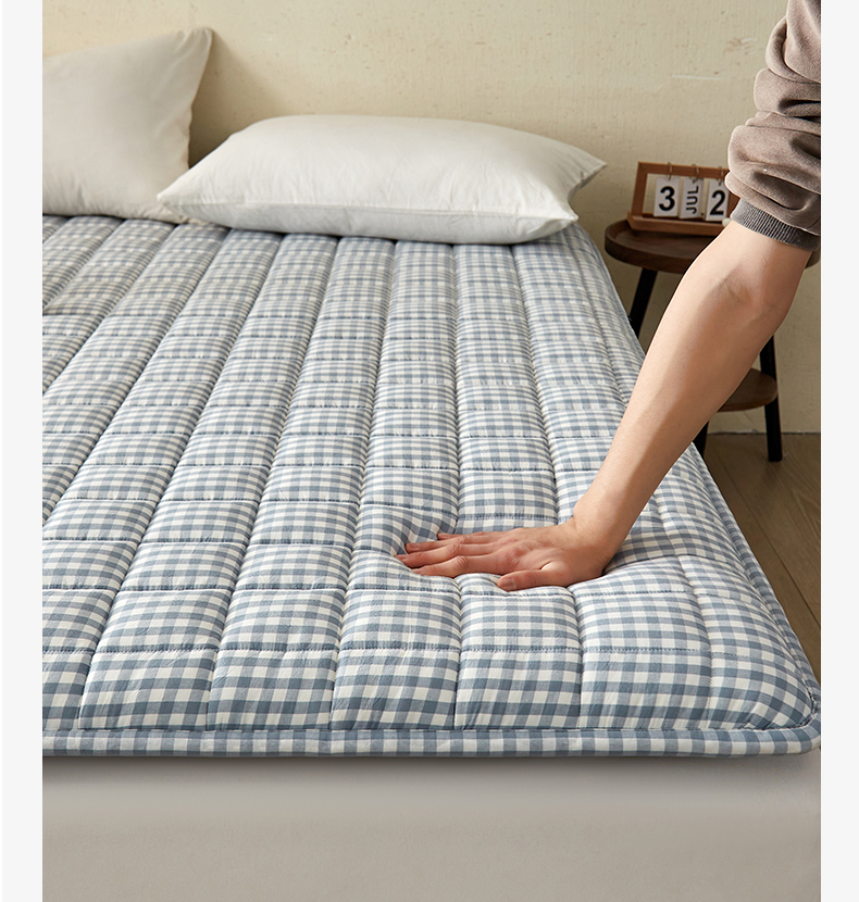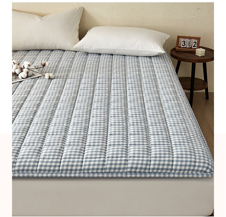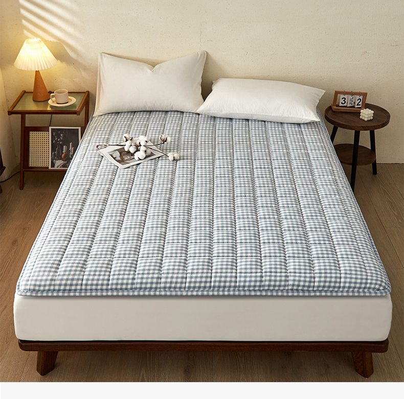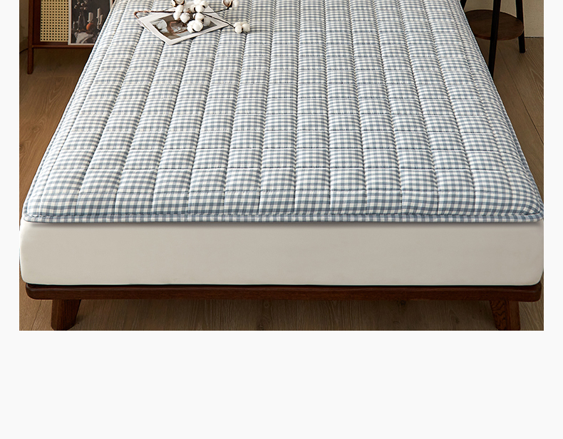 祁恋婷家居 2024新款全棉水洗棉棉花床褥床垫【床垫遮盖物】系列-成人款 蓝小格