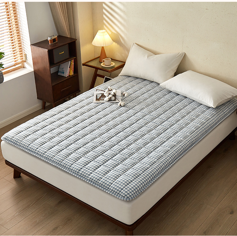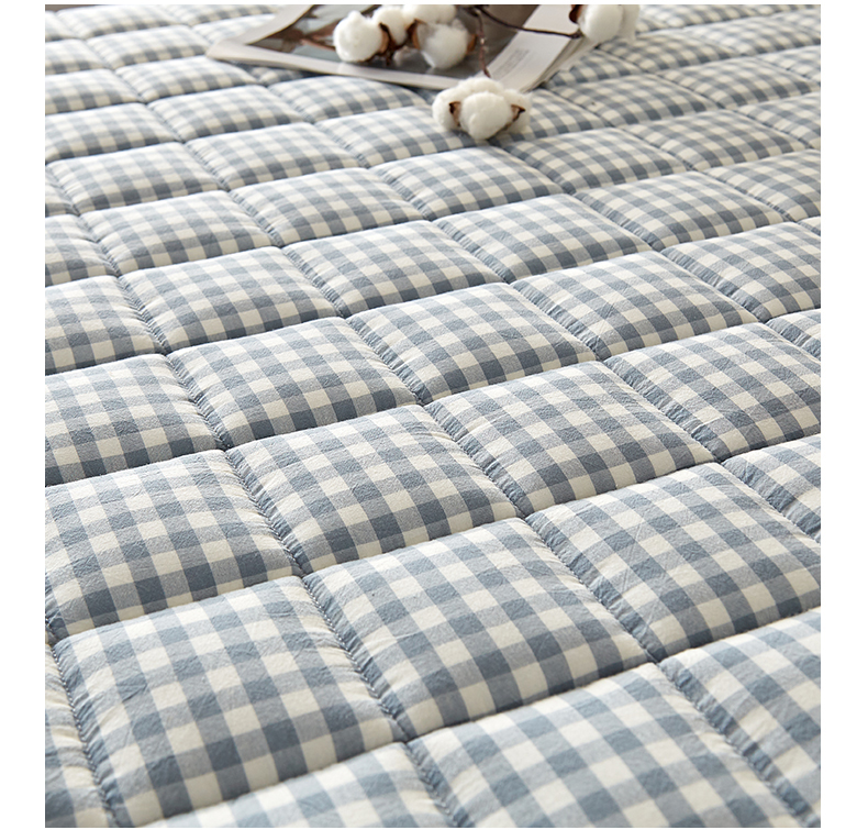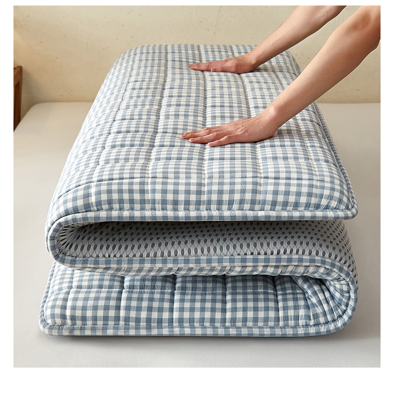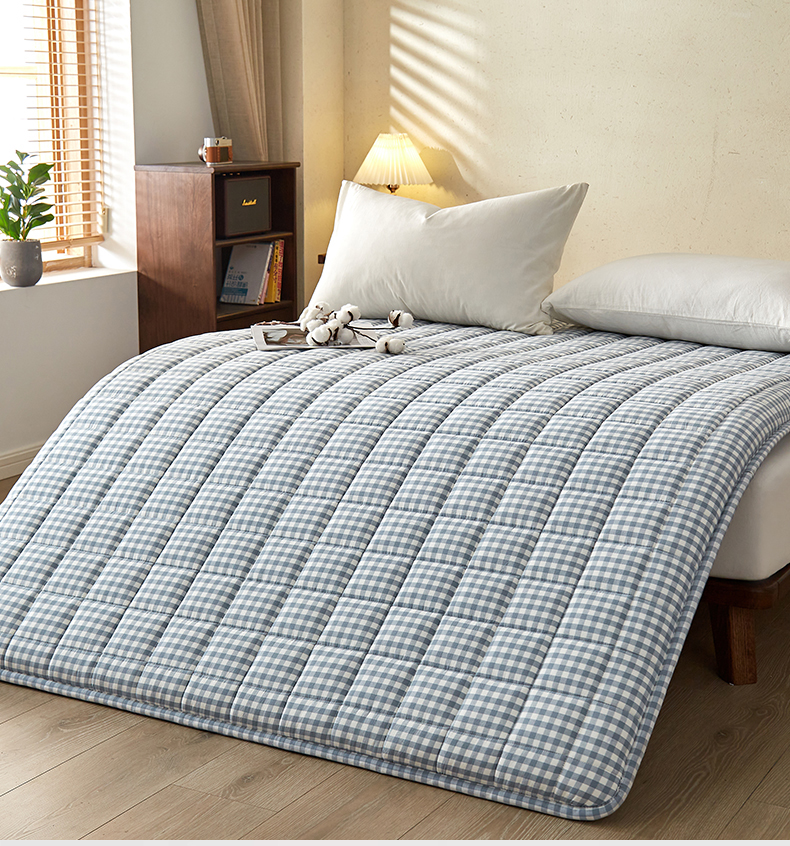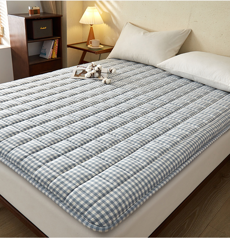 祁恋婷家居 2024新款全棉水洗棉棉花床褥床垫【床垫遮盖物】系列-成人款 蓝小格