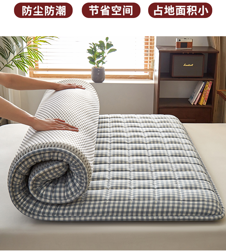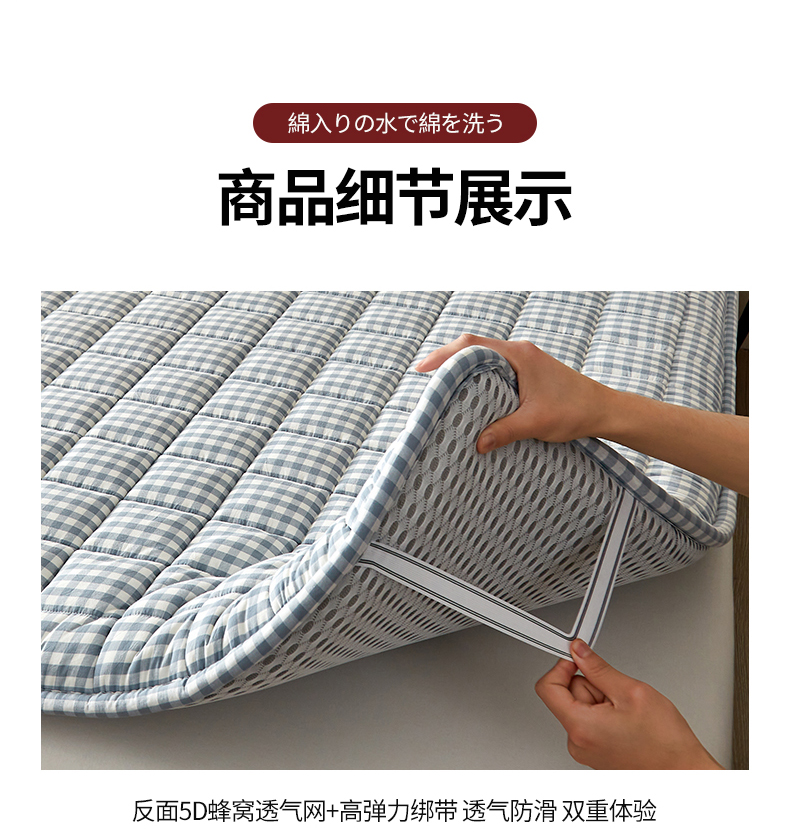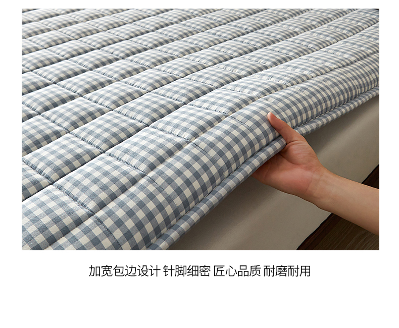 商品名称:祁恋婷家居 2024新款全棉水洗棉棉花床褥床垫【床垫遮盖物】系列-成人款 蓝小格