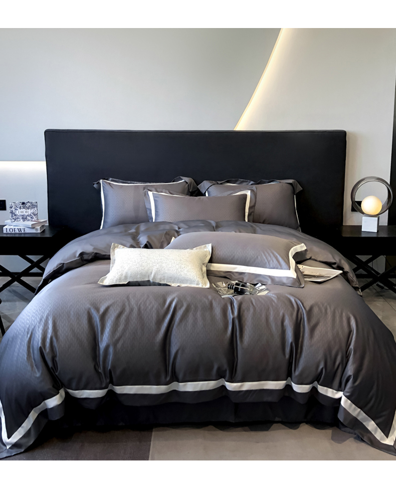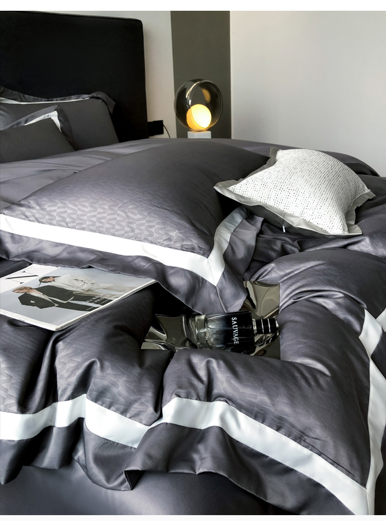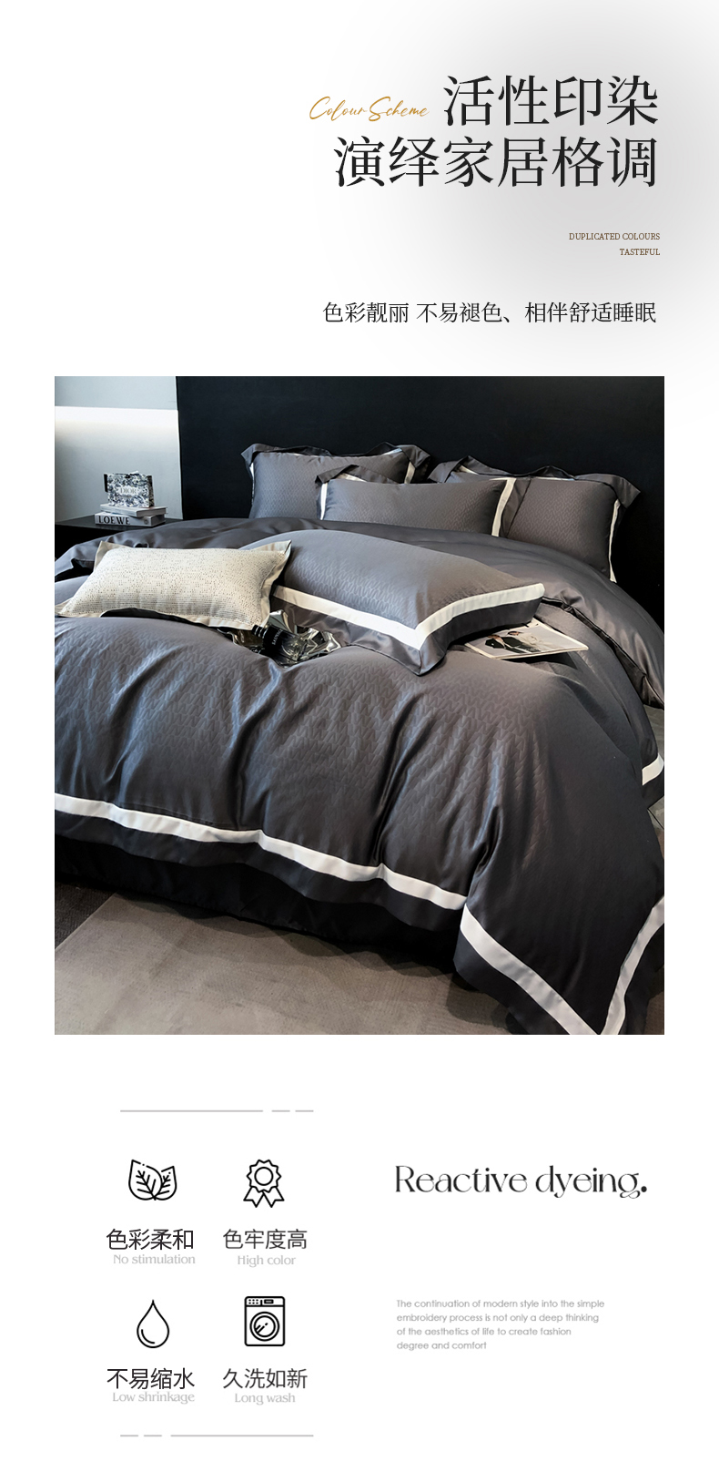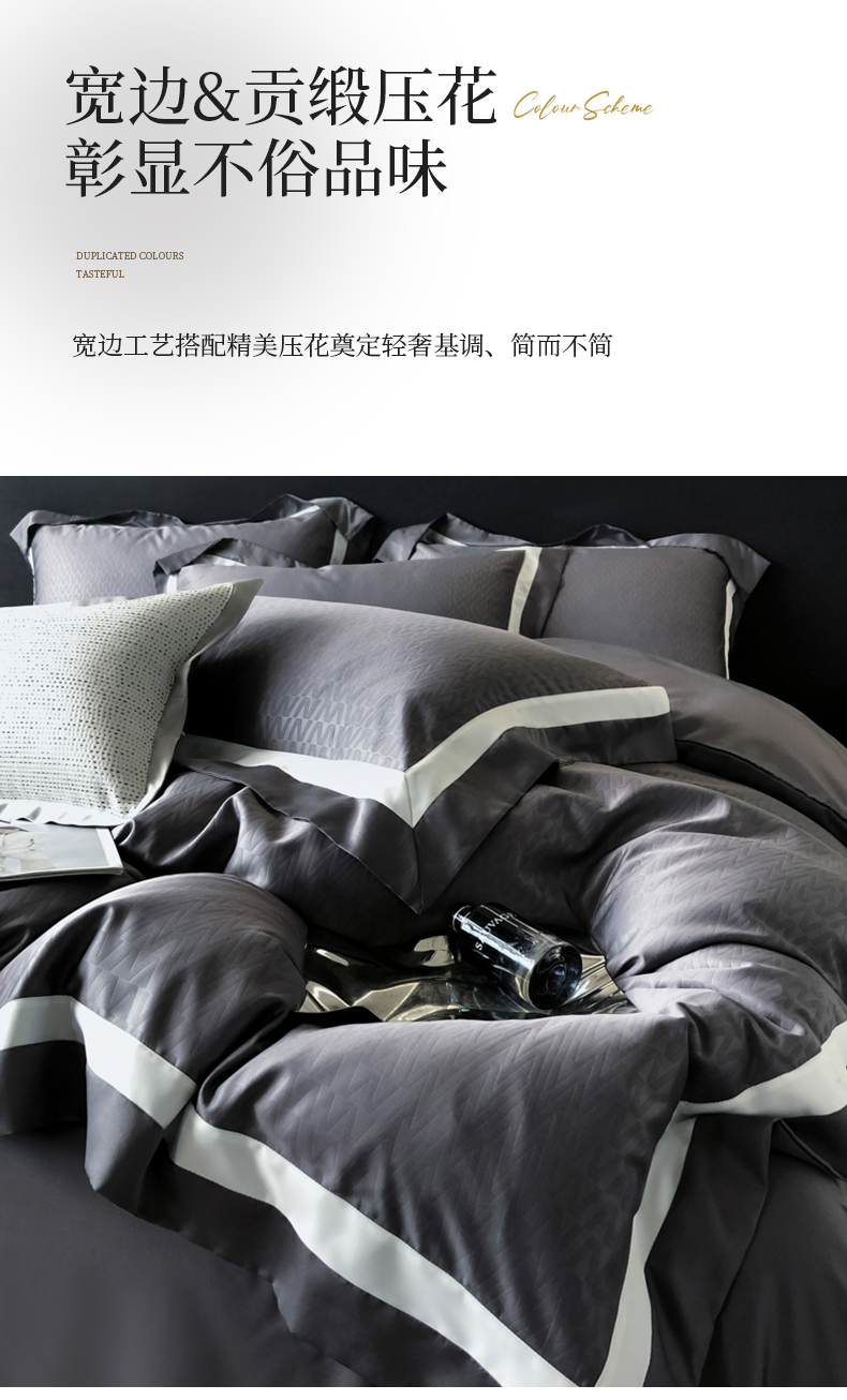 商品名称:遇见家居生活馆 2024新款贡缎压花水洗真丝四件套 雅典+深灰