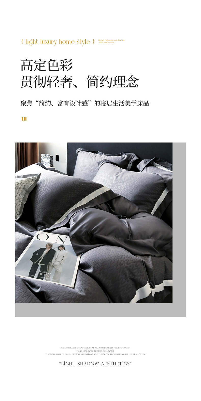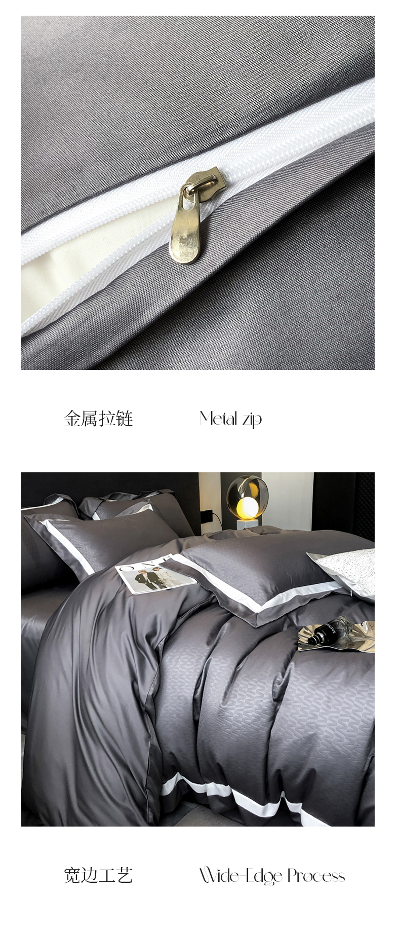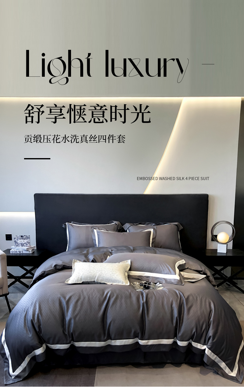 遇见家居生活馆 2024新款贡缎压花水洗真丝四件套 雅典+深灰