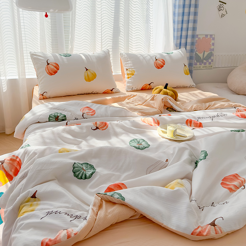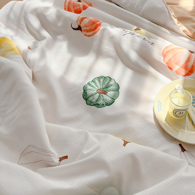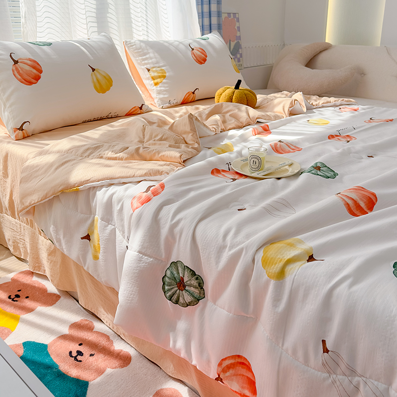 慕尚家纺 2025新款亲肤泡泡棉卡通印花夏被单品夏被四件套 南瓜乐园