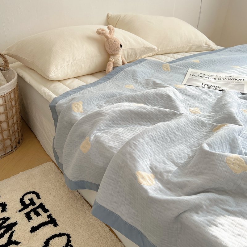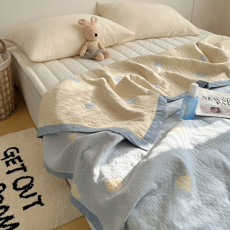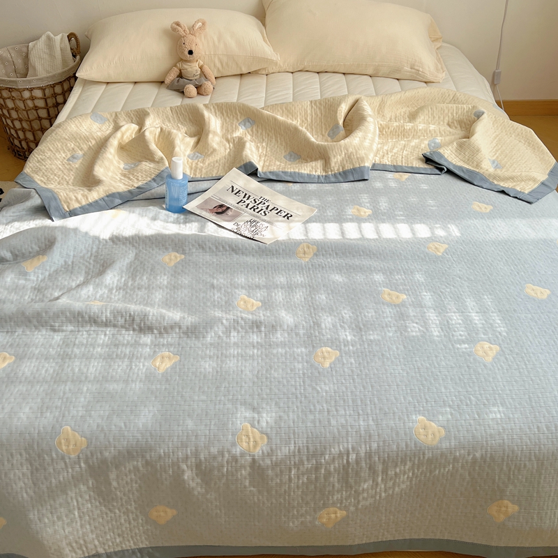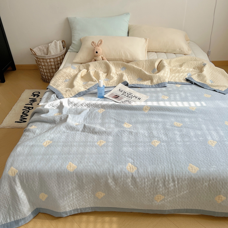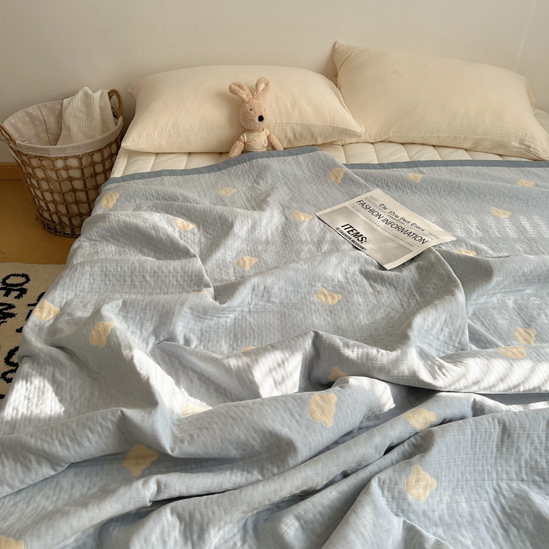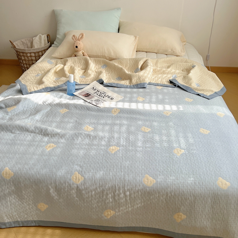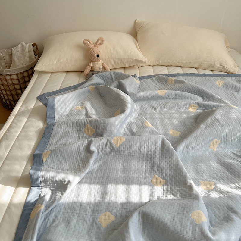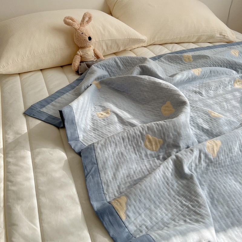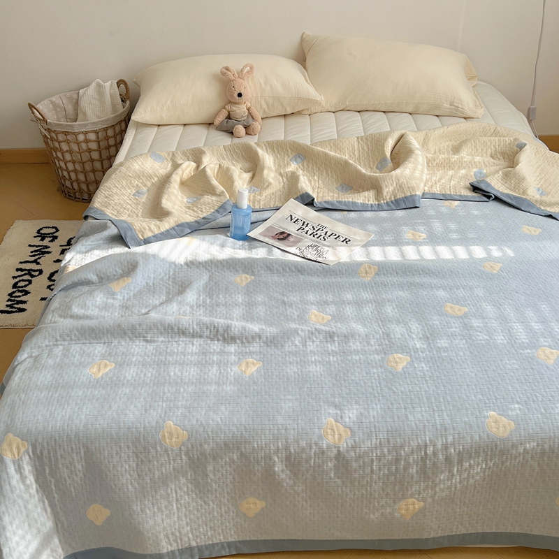 商品名称:桃喜 2024新款A类全棉提花三层纱夏被 熊仔蓝