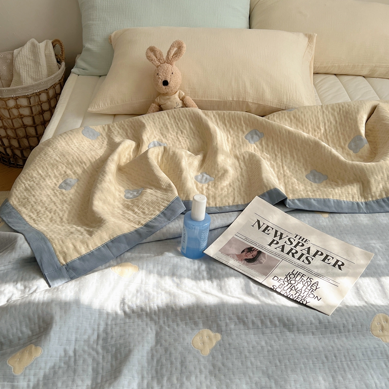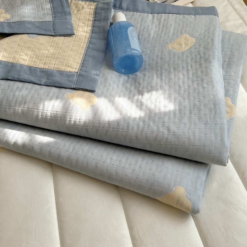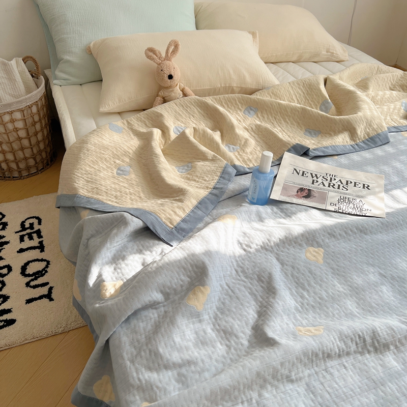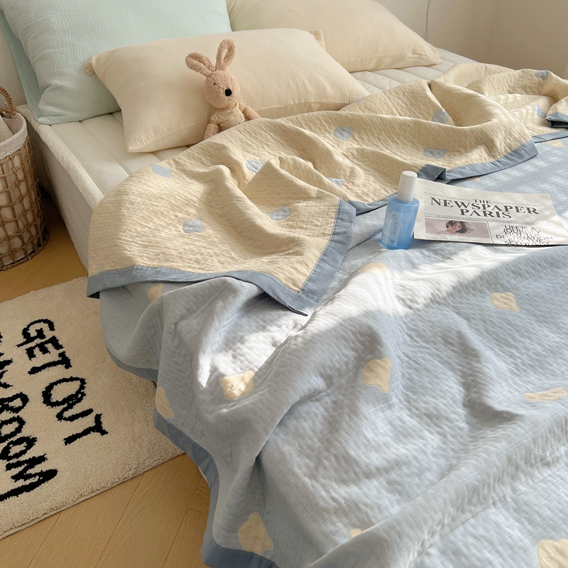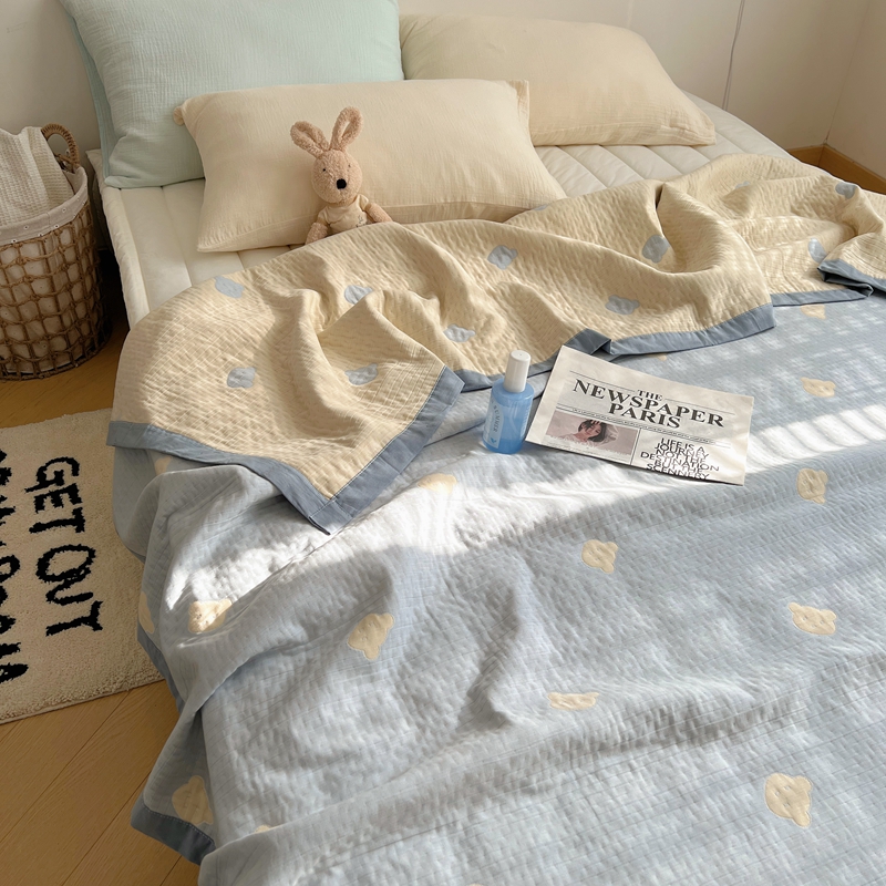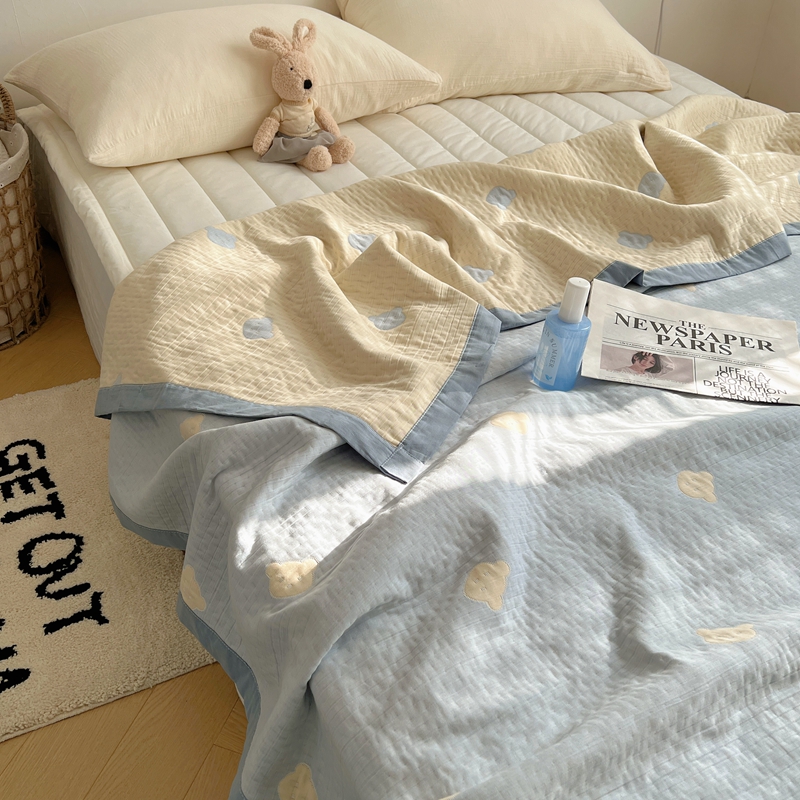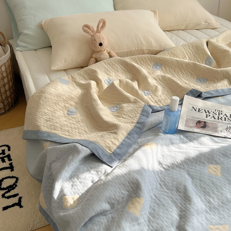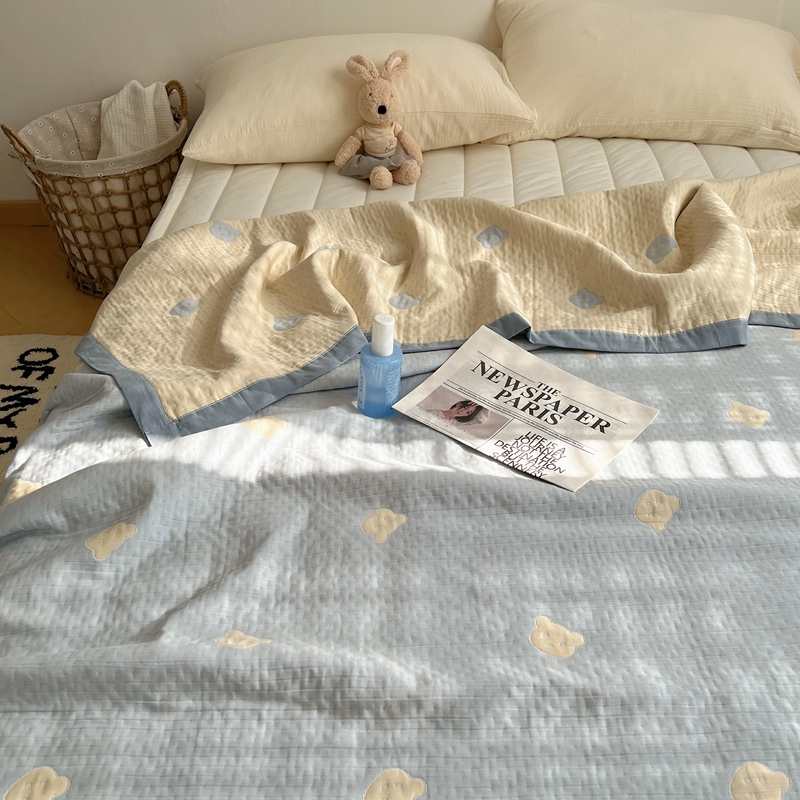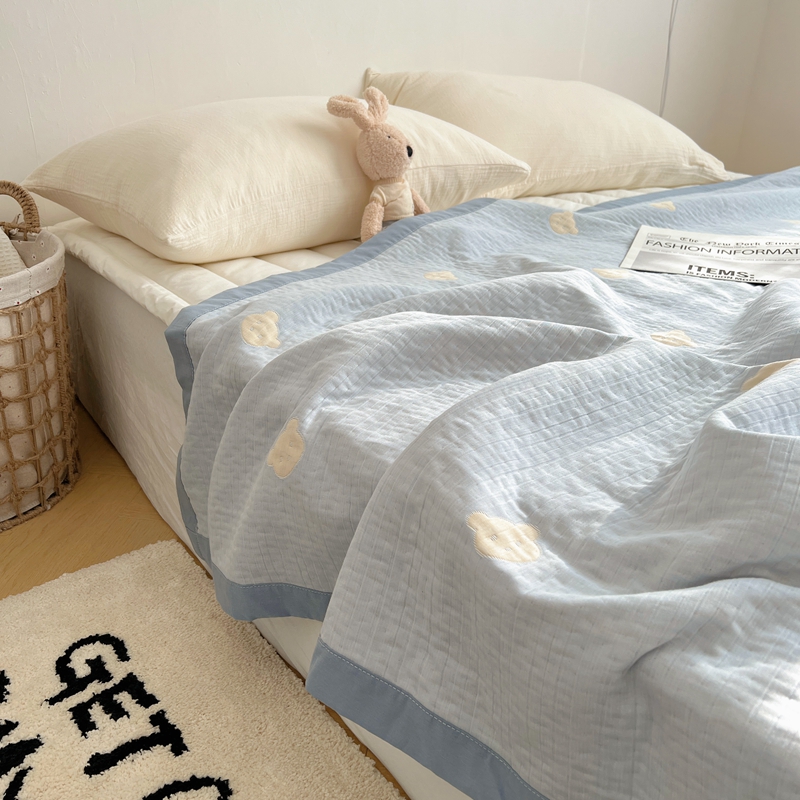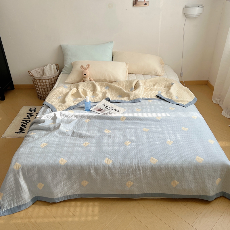 商品名称:桃喜 2024新款A类全棉提花三层纱夏被 熊仔蓝
