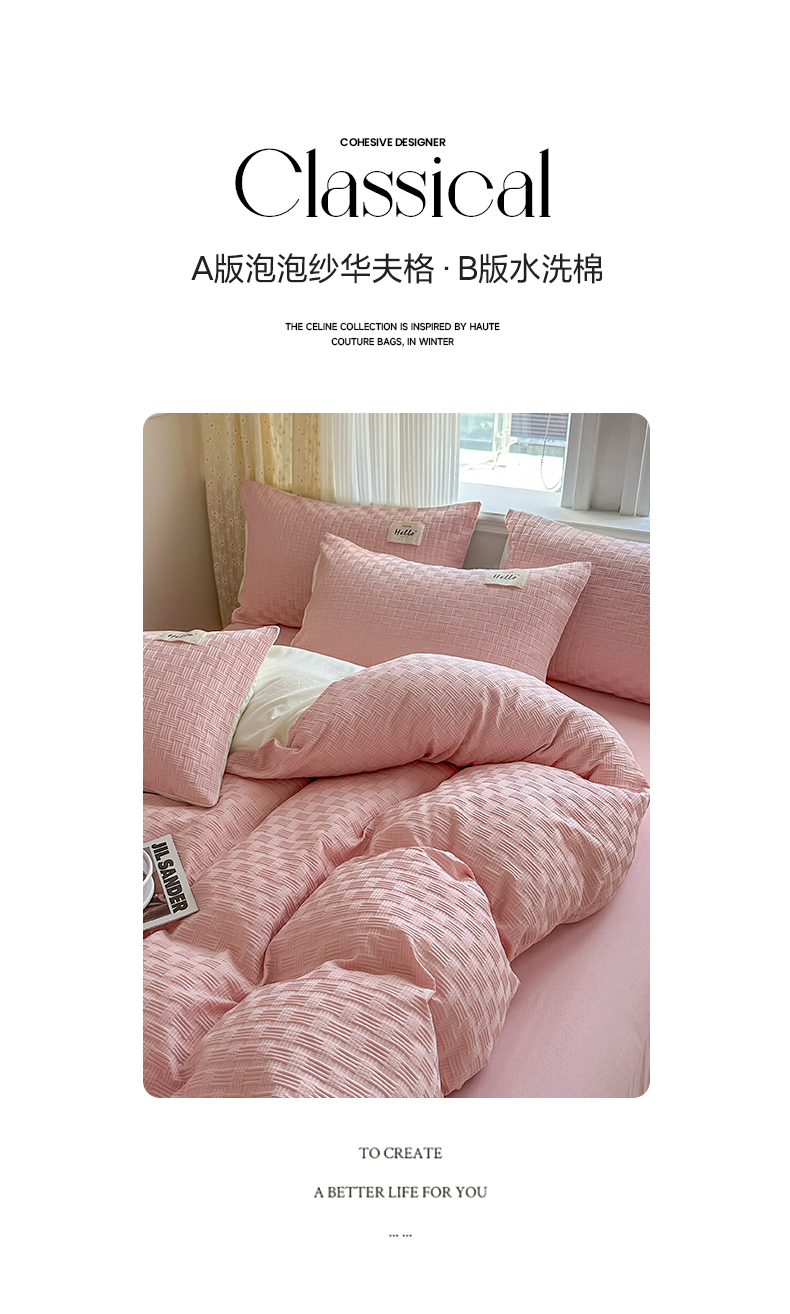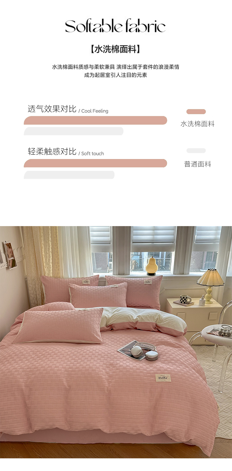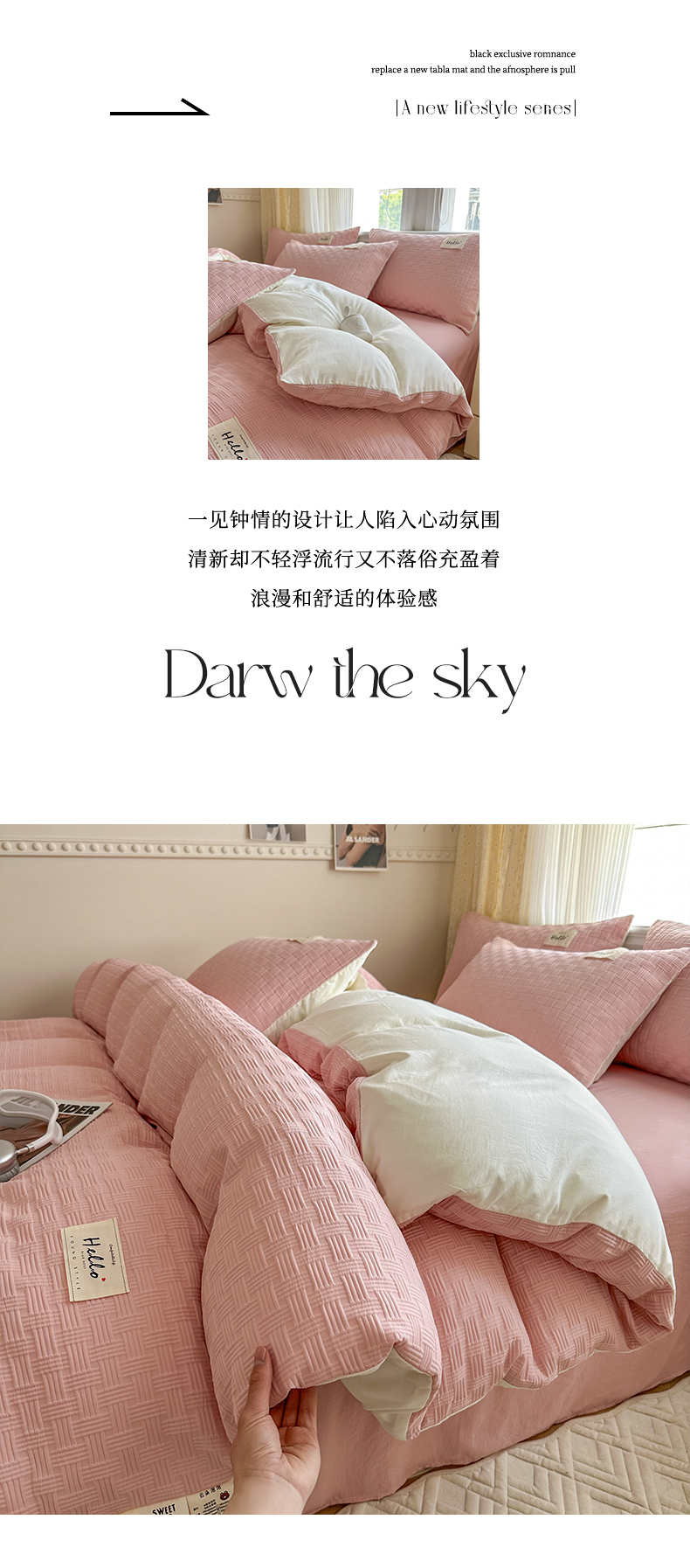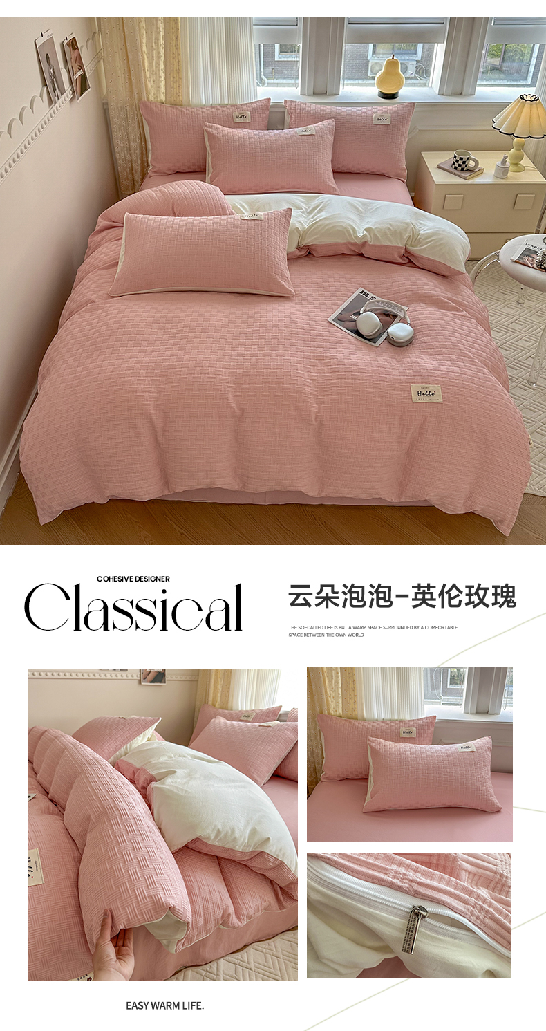 当前位置: 91家纺网 > 商品网购 > 床品套件 > 四件套 > 水洗棉四件套 > 沐辰 2024新款亲肤水洗棉云朵泡泡系列四件套 云朵泡泡-英伦玫瑰