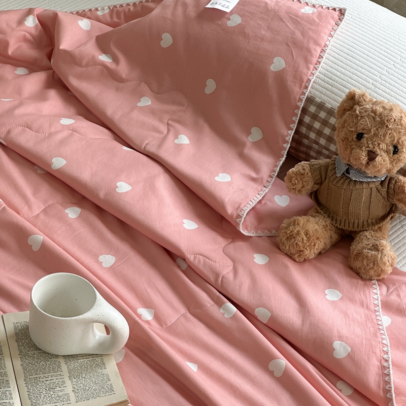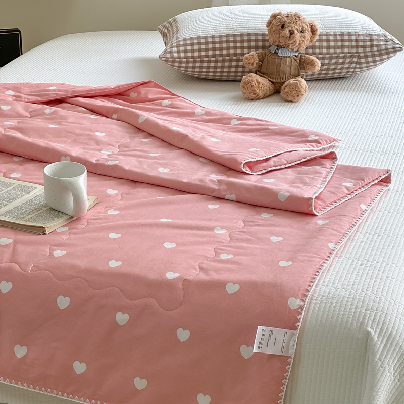 洋铭区(原狠狠爱) 2024新款贝壳边全棉印花夏被 粉色小心心
