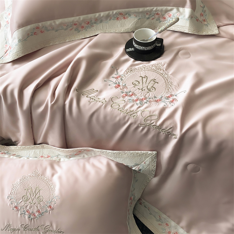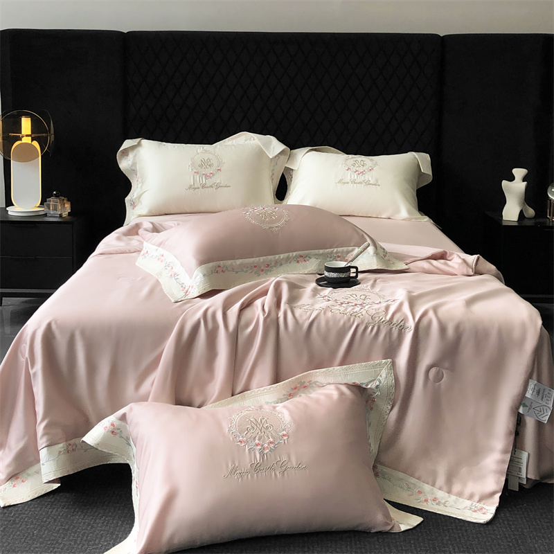 商品名称:馨蕊家居 2024新款奥地利兰精天丝刺绣夏被四件套-梦露 梦露-蔷薇粉