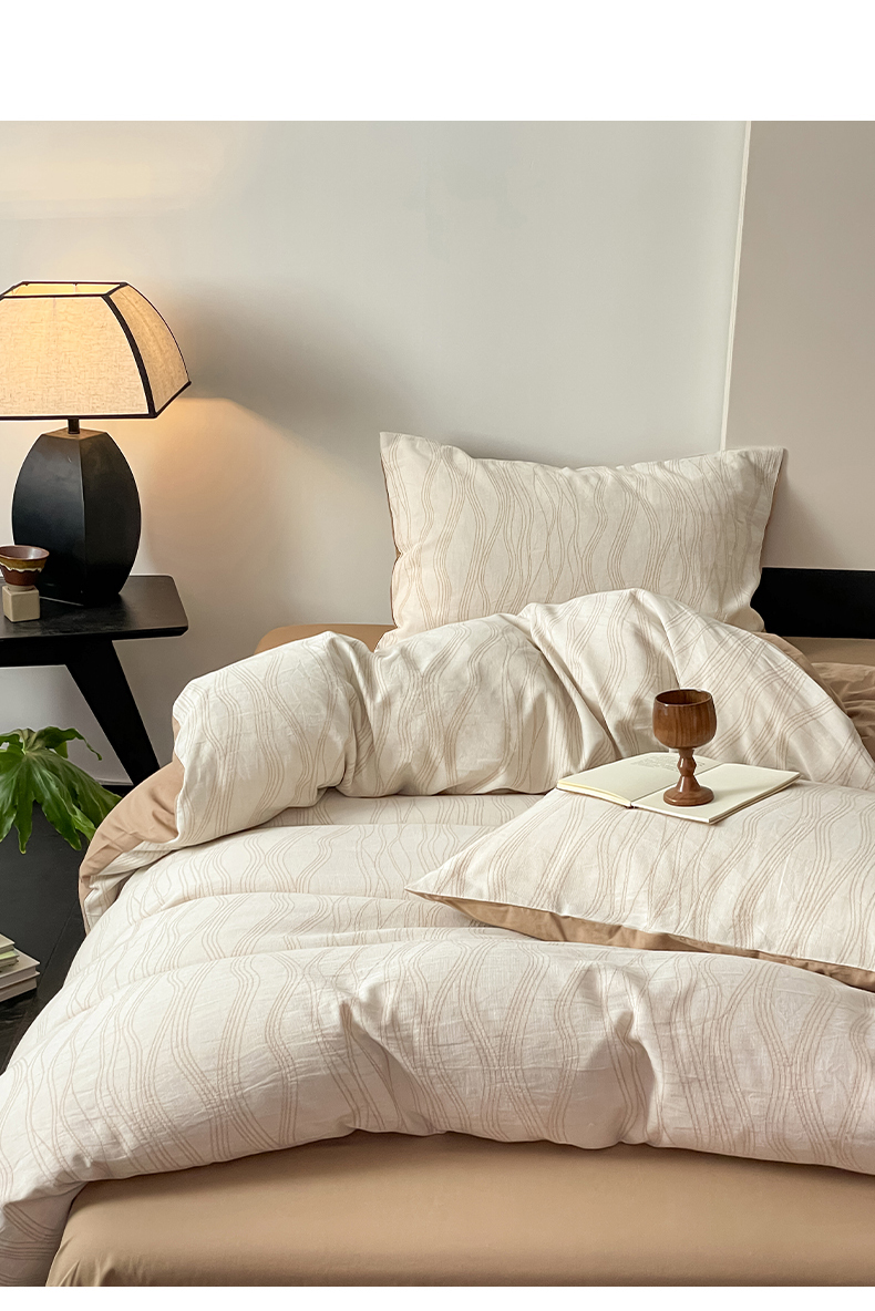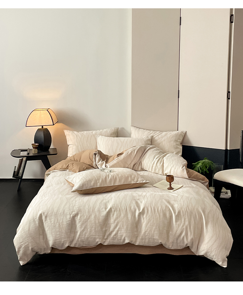 当前位置: 91家纺网 > 商品网购 > 床品套件 > 四件套 > 全棉普通四件套 > 莱茵家居 2024新款40sA类全棉水洗绵三层纱提花四件套-流年系列 流年-亚麻咖