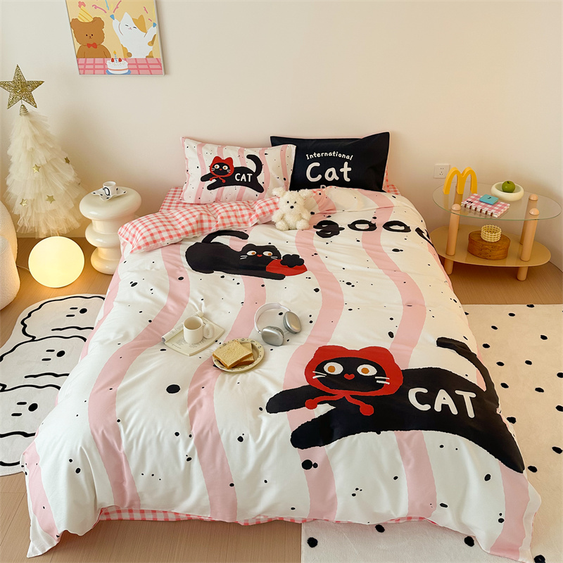 (总)珺柔家纺 2025新款全棉双层纱印花四件套,粉豹纹,焦糖小曲奇,礼物女孩,猫狗日记,奶油星空,线条苹果猫,小飞象,小狗的家,樱桃,樱桃西高地