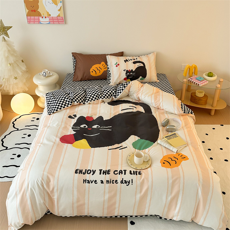 (总)珺柔家纺 2025新款数码印花枕套全棉磨毛毛巾绣卡通四件套,海底世界,马上发财,苹果小小猫,圣诞小丑,香蕉熊,音乐企鹅,樱桃小熊,puppy狗