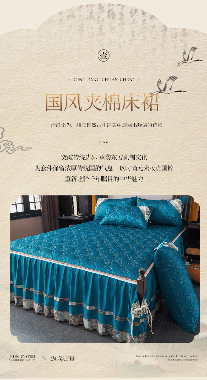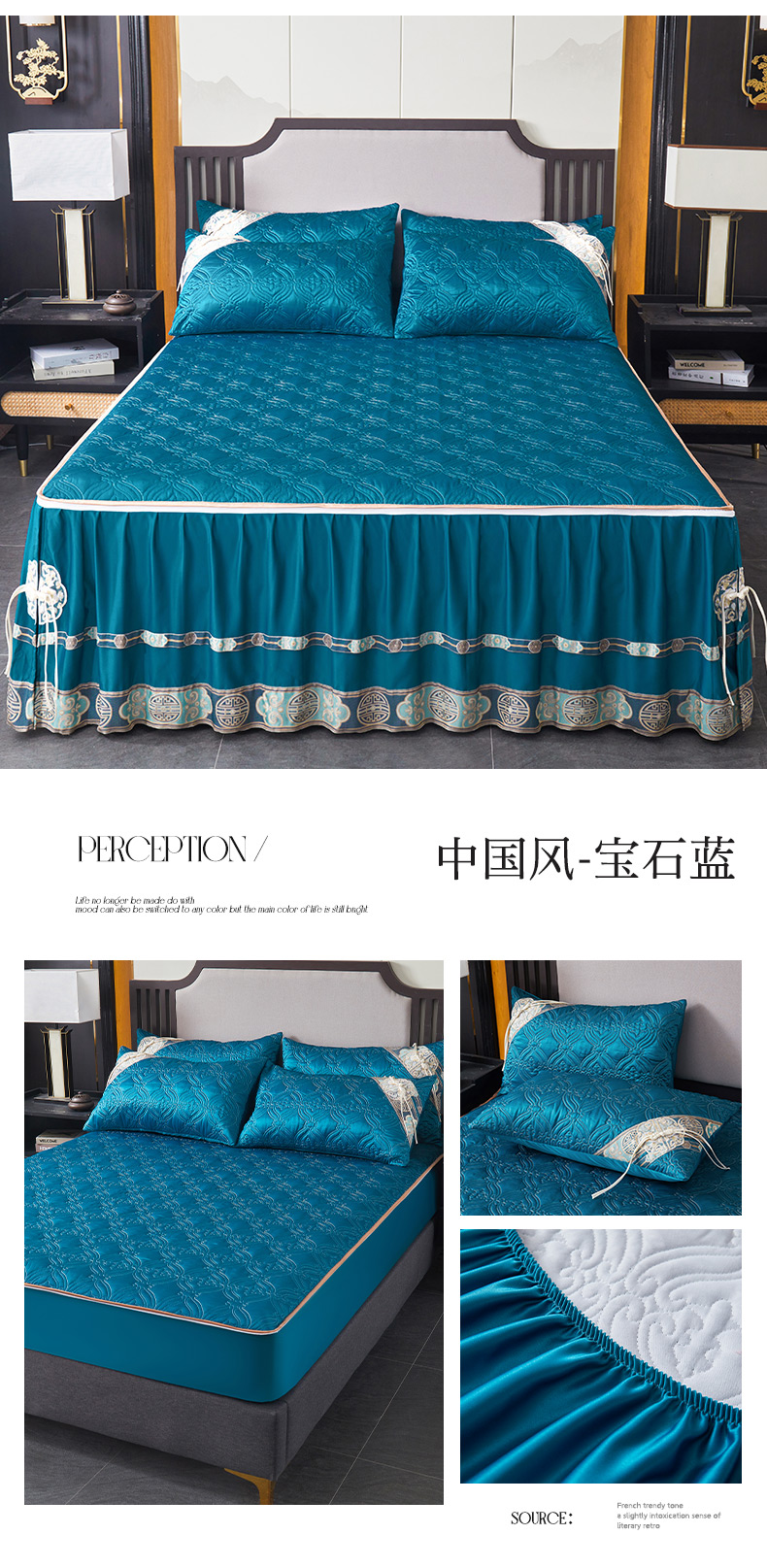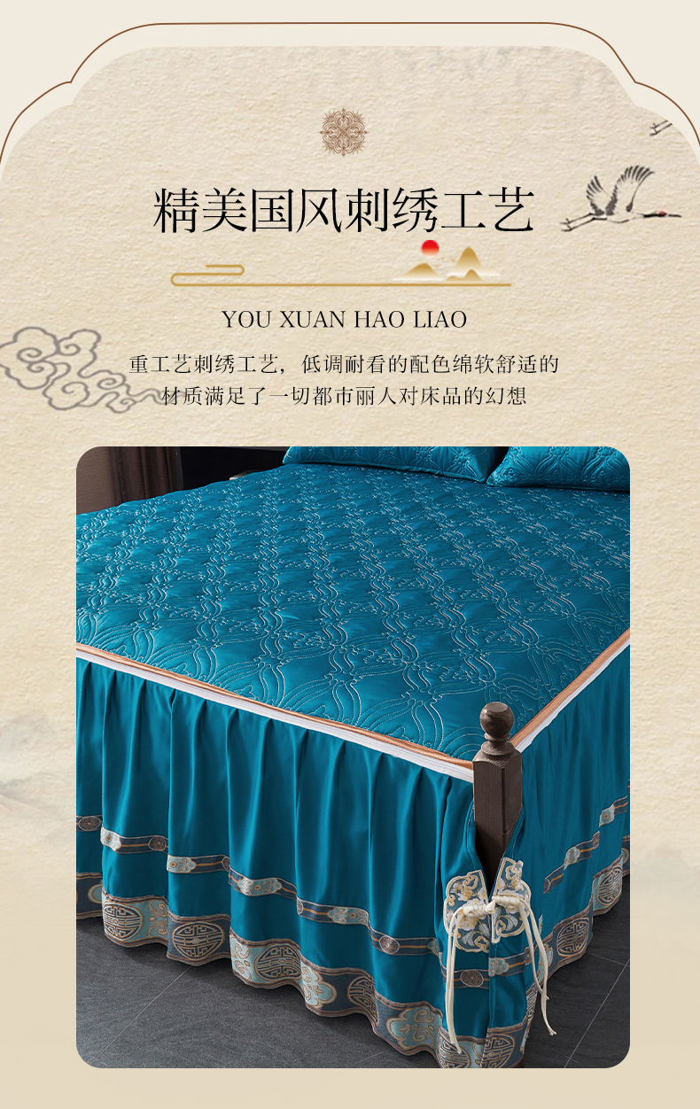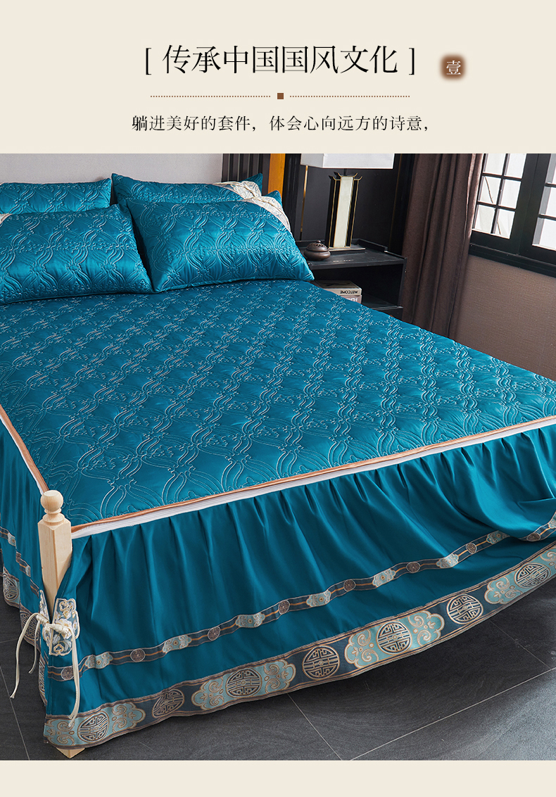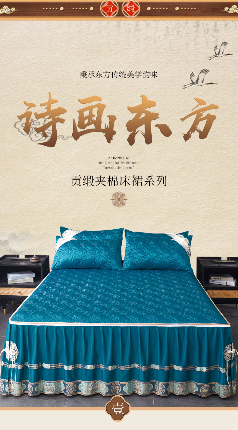 当前位置: 91家纺网 > 商品网购 > 床品套件 > 三件套 > 罗艺轩 2024新款贡缎夹棉中国风新中式系列床裙三件套 中国风-宝石蓝