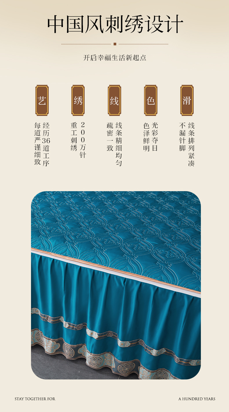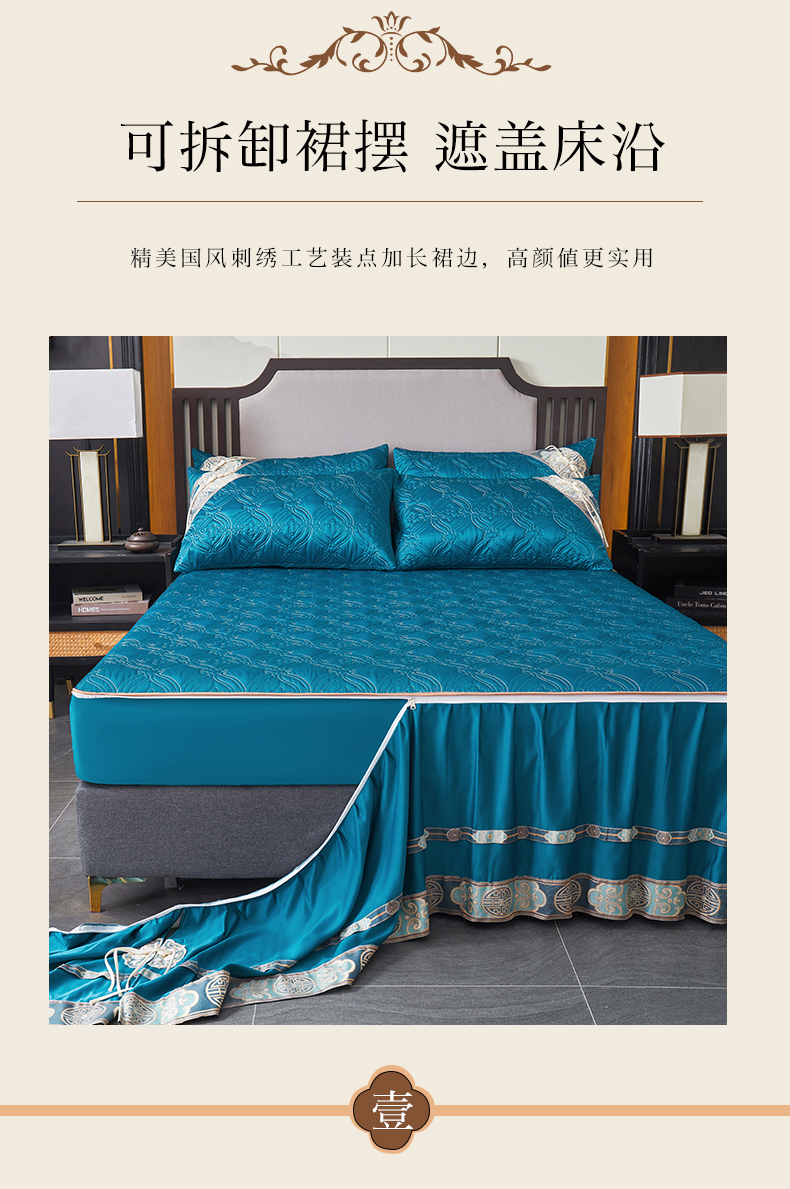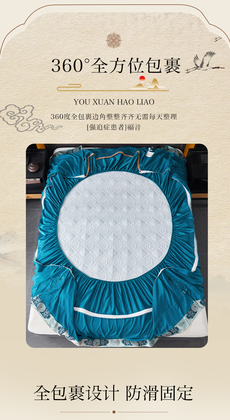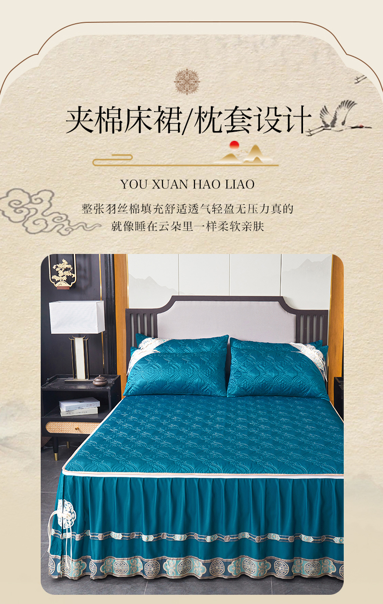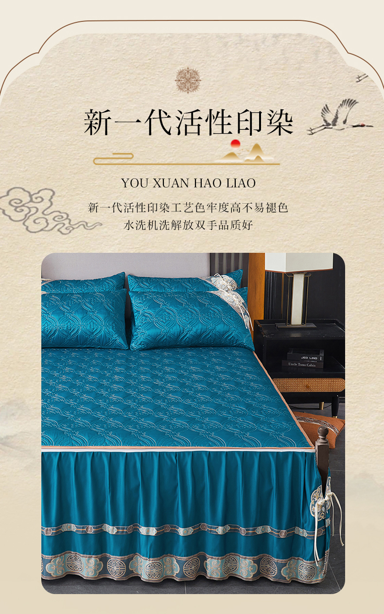 当前位置: 91家纺网 > 商品网购 > 床品套件 > 三件套 > 罗艺轩 2024新款贡缎夹棉中国风新中式系列床裙三件套 中国风-宝石蓝