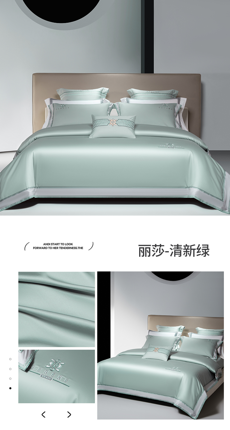 商品名称:高大尚婚庆馆 2025新款长绒棉高端绣花四件套 丽莎 清新绿