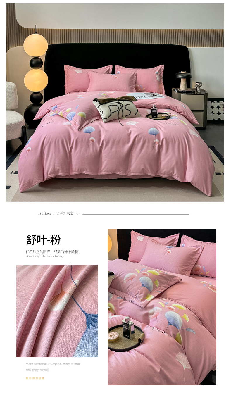 商品名称:昊翔家纺 2024新款全棉磨毛印花四件套 舒叶-粉