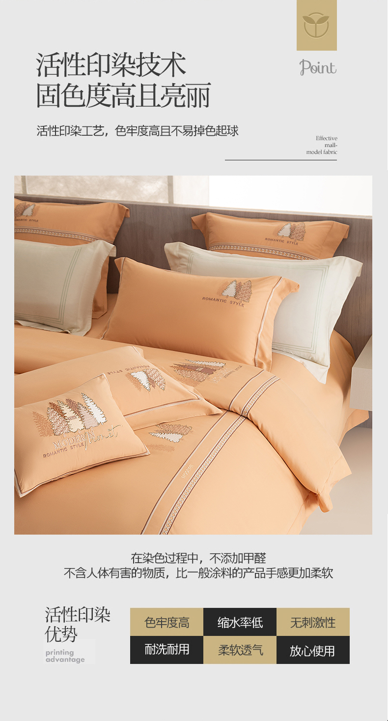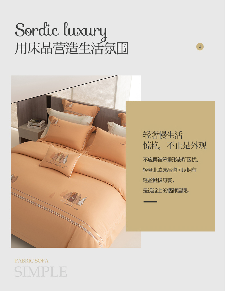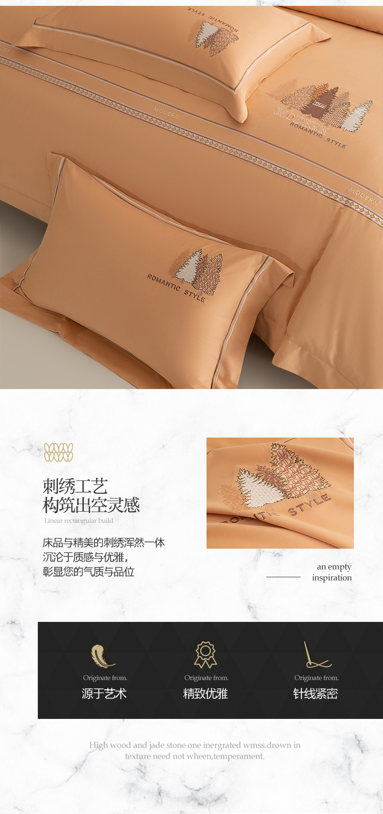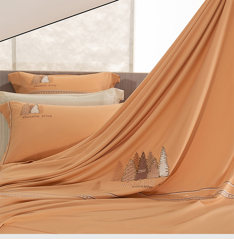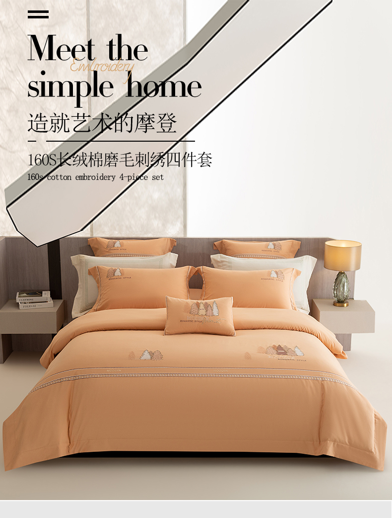 高大尚婚庆馆 2025新款长绒棉磨毛高端绣花四件套 希尔 南瓜橘