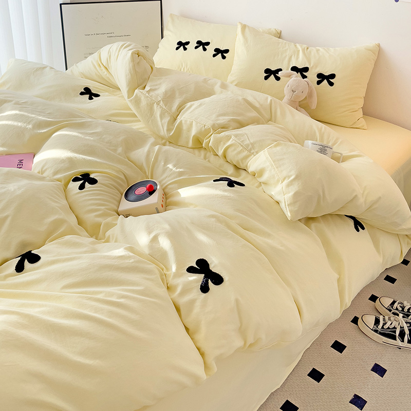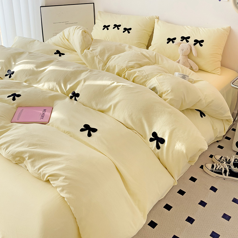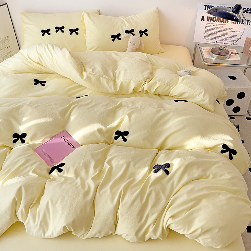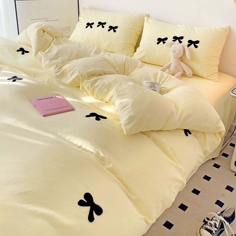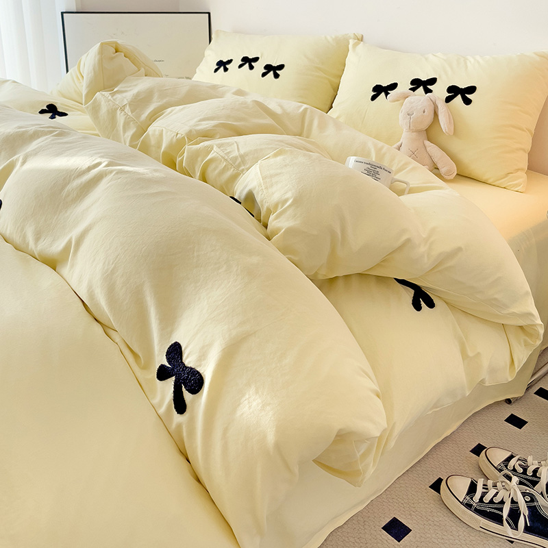 当前位置: 91家纺网 > 商品网购 > 床品套件 > 四件套 > 水洗棉四件套 > 艾特你 2024新款水洗棉毛巾绣四件套 蝴蝶结-黄色