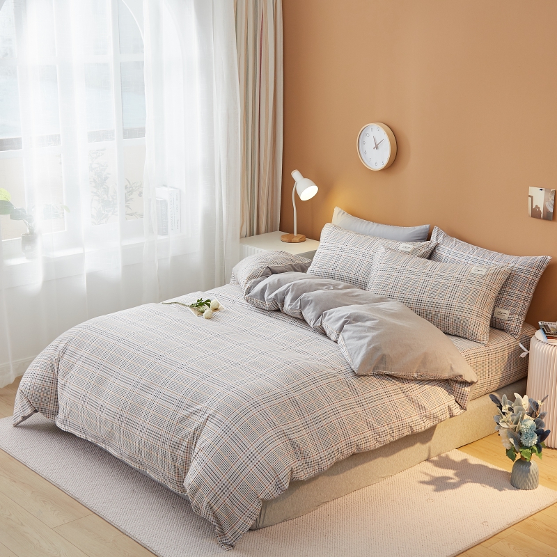 2024新款无印风水洗棉亲肤简约学生三件套 曼森灰格