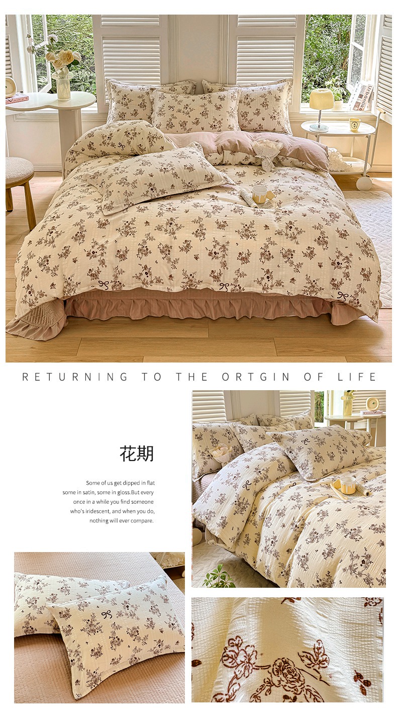 (总)富之航家纺 2024爆款公主风床盖四件套新款小清新提花针织棉床盖四件套,蝶恋花咖,比心,饼干熊,芙蔓,复苏,格调,剪秋,蓝图,梦蝶,蜜桃,莫吉,清欢,素漫,雾里花,相思兰,玉隐