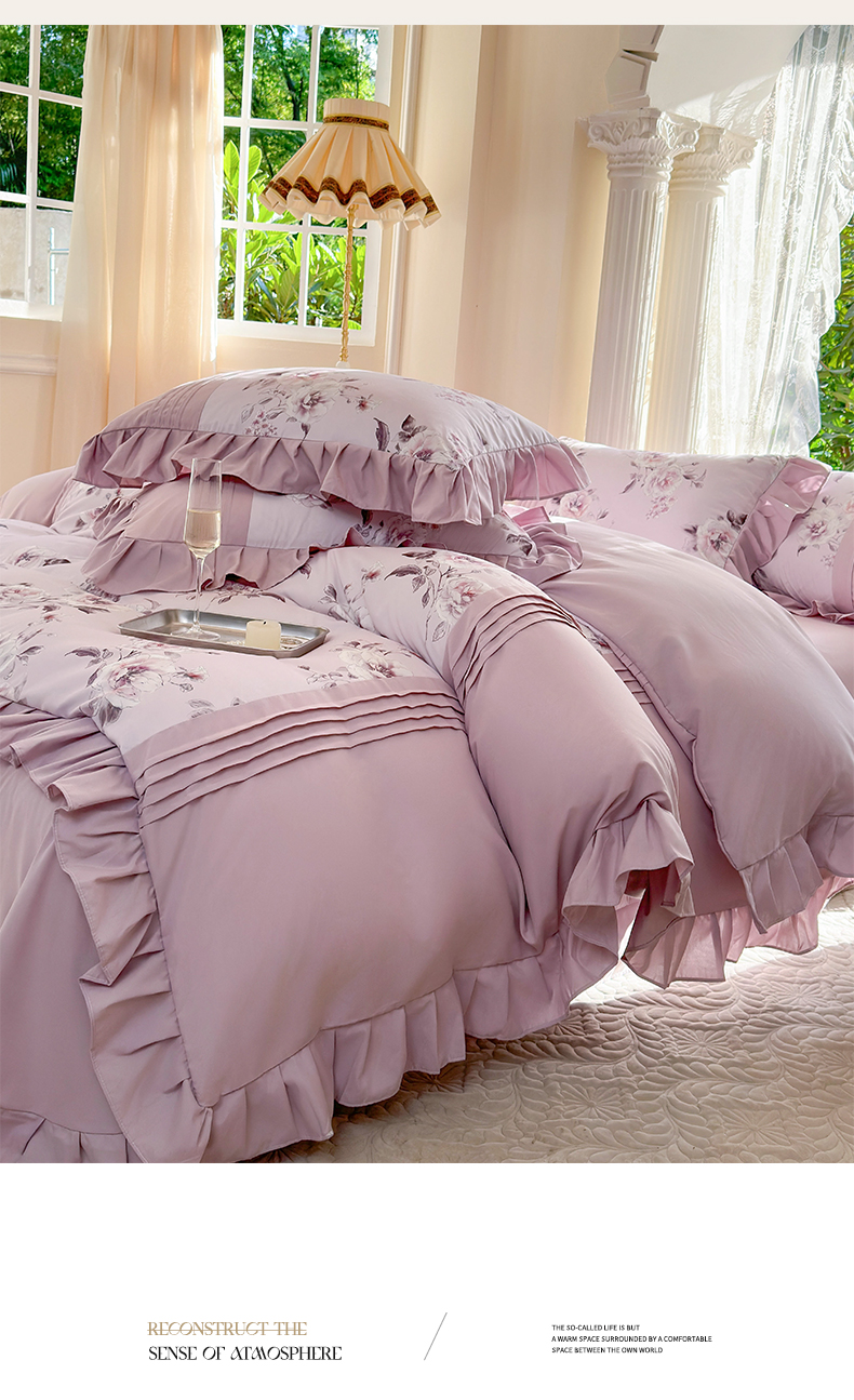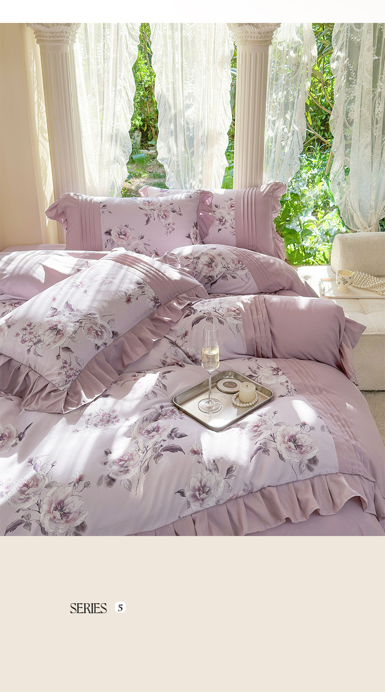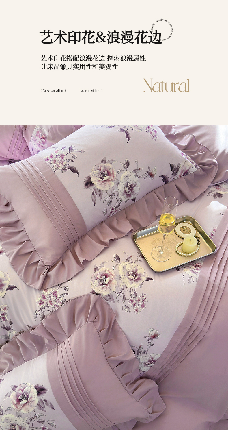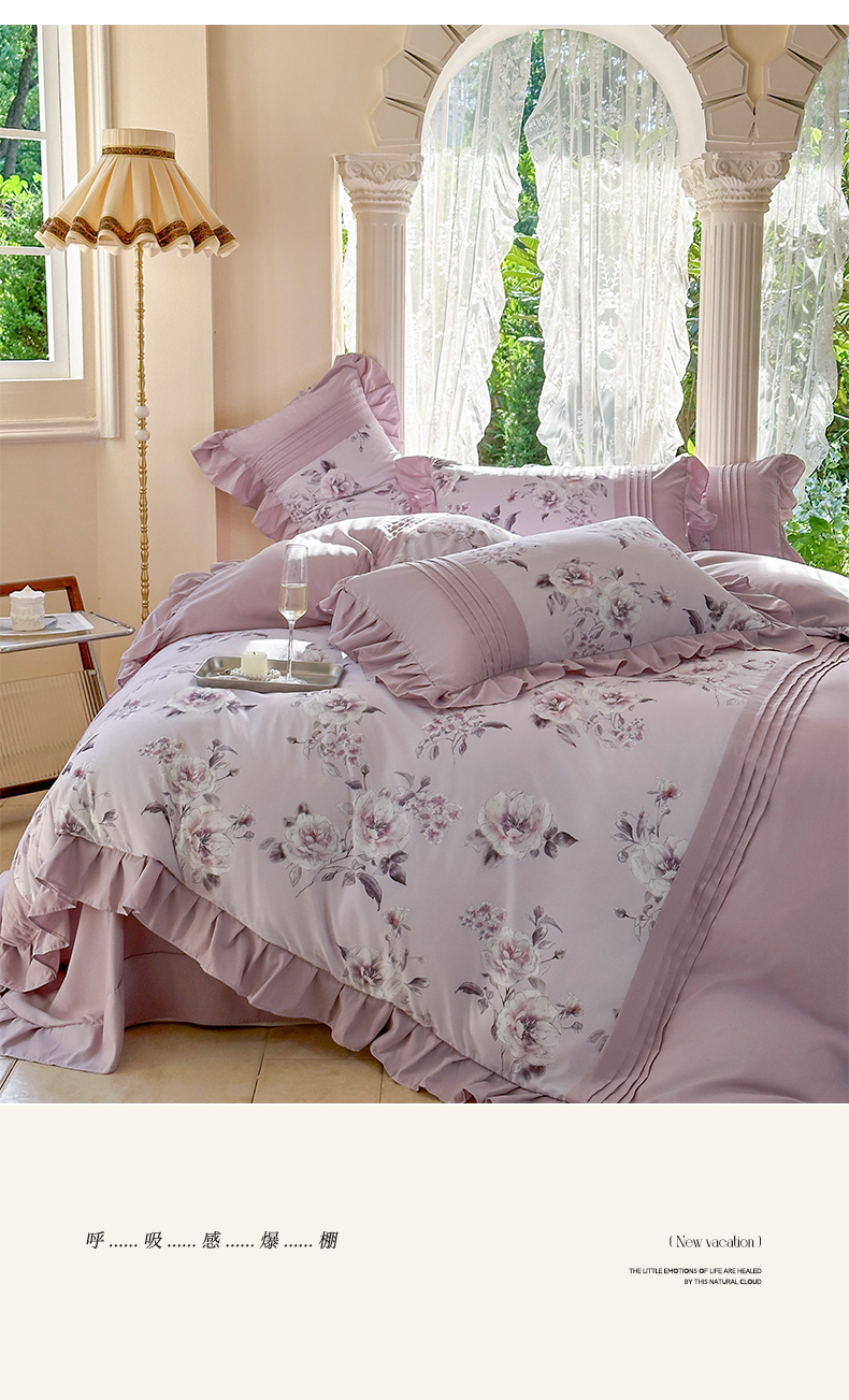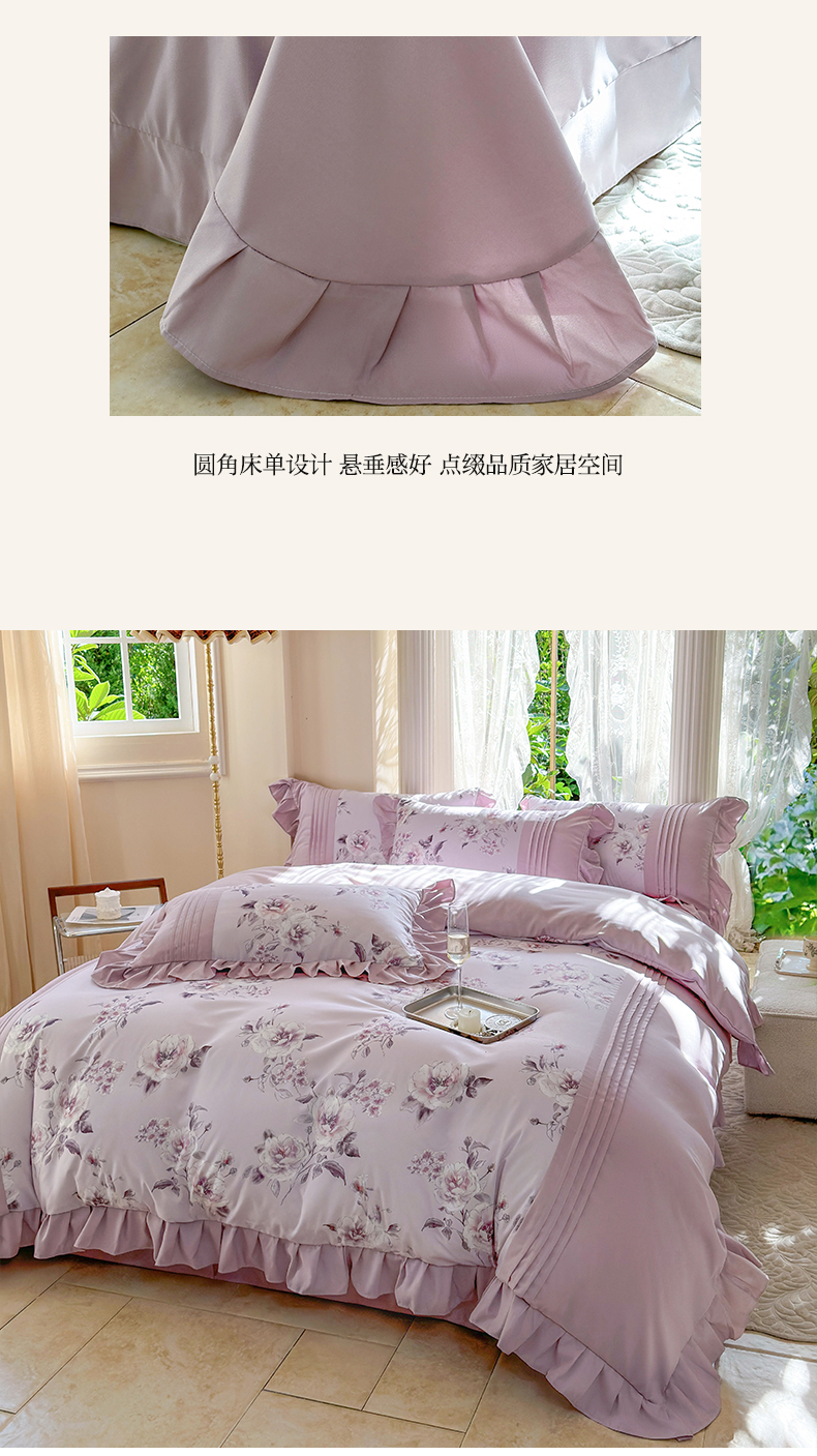 商品名称:豪美鑫 2025新款柔肤棉印花花边四件套-初恋 初恋-丁香紫